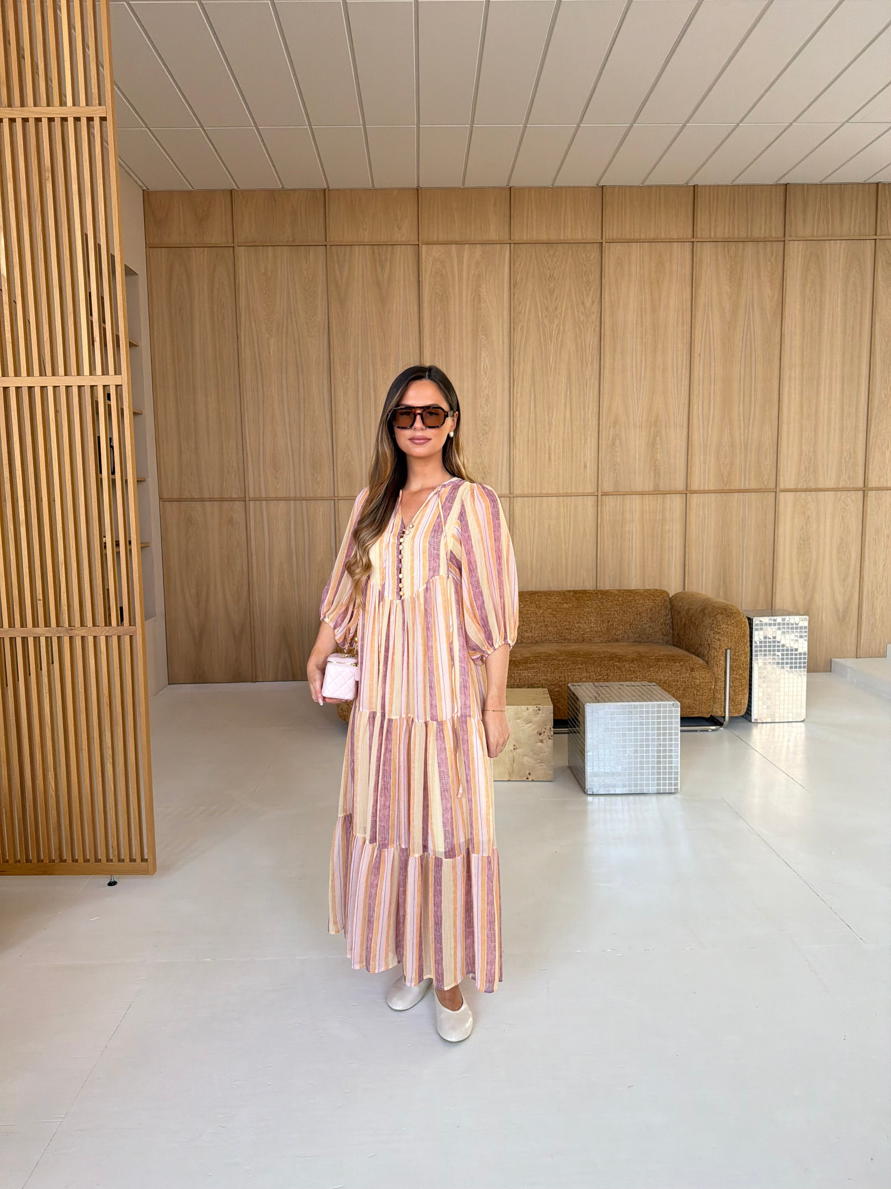 Robe SINAYA longue en lin beige