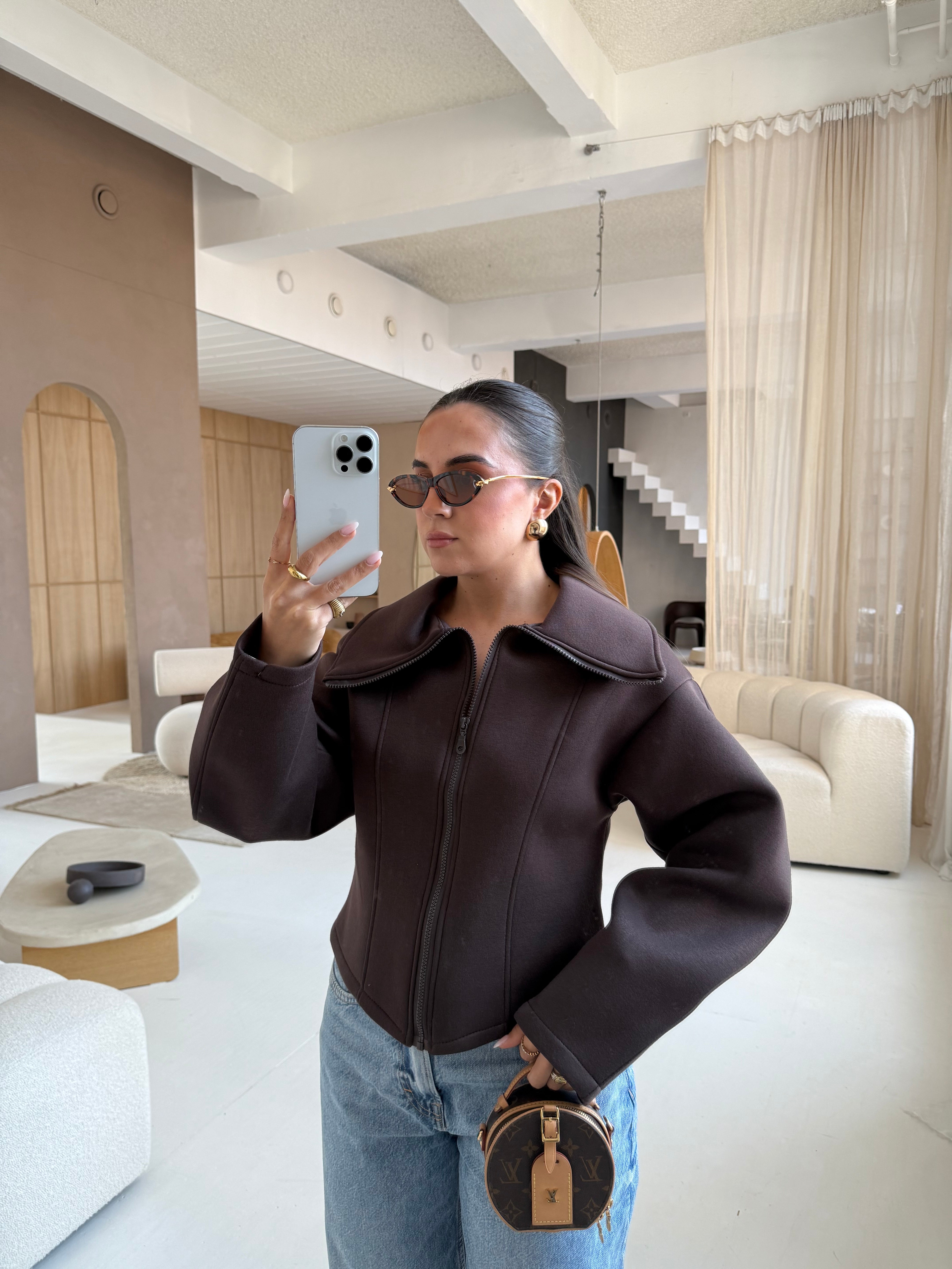 Gilet kid mohair bijoux marron (24004)