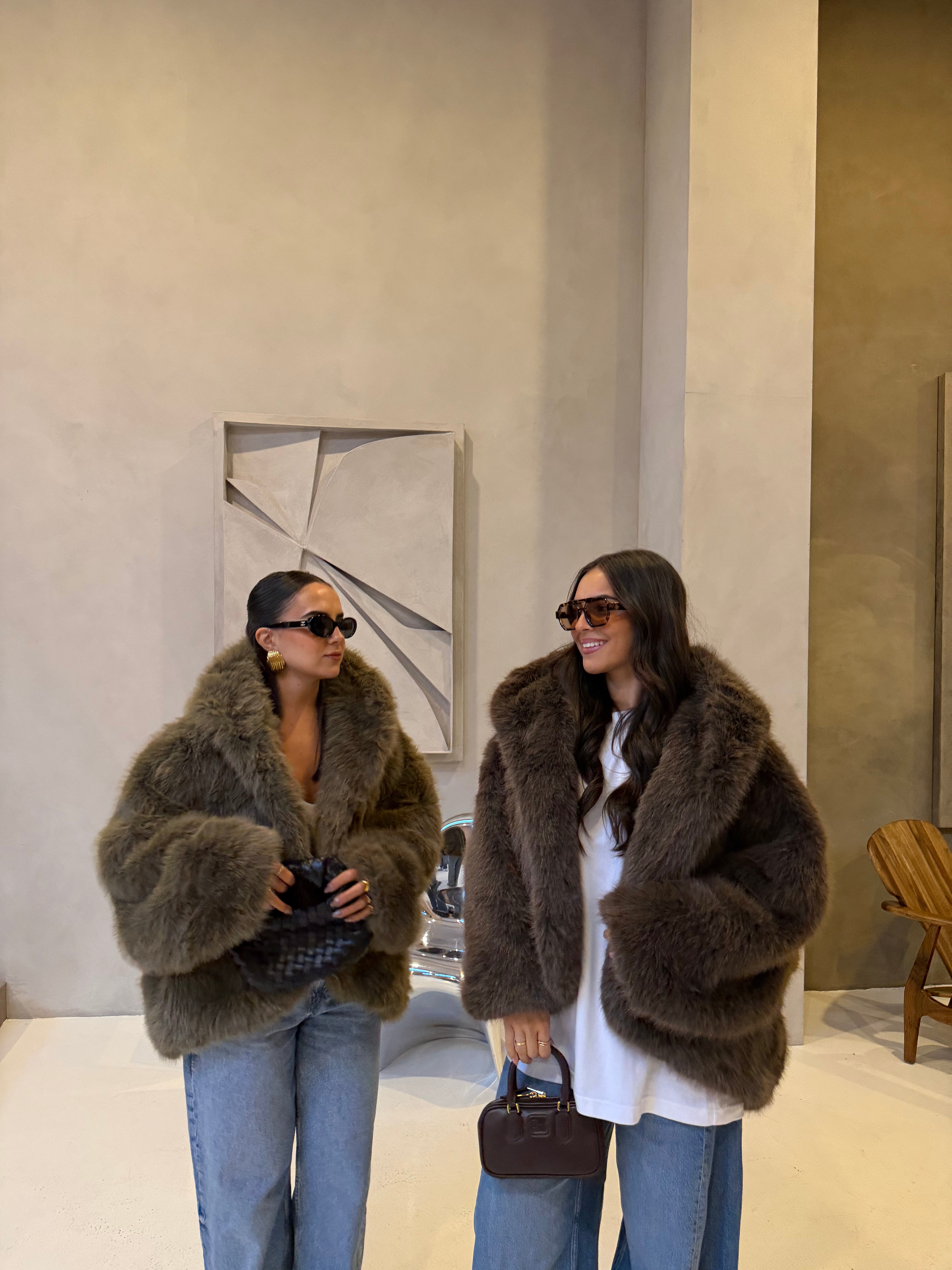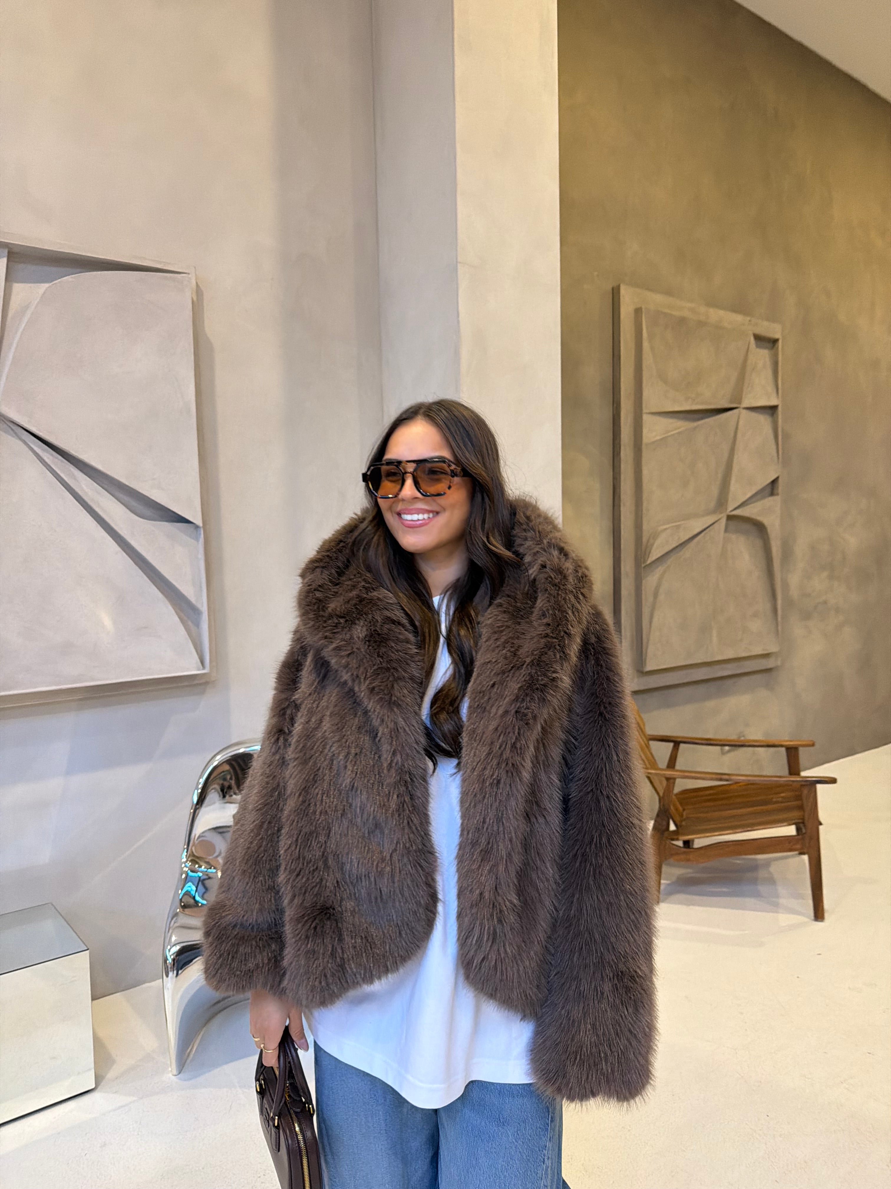 Fourrure vegan MINA capuche marron (JS6710)