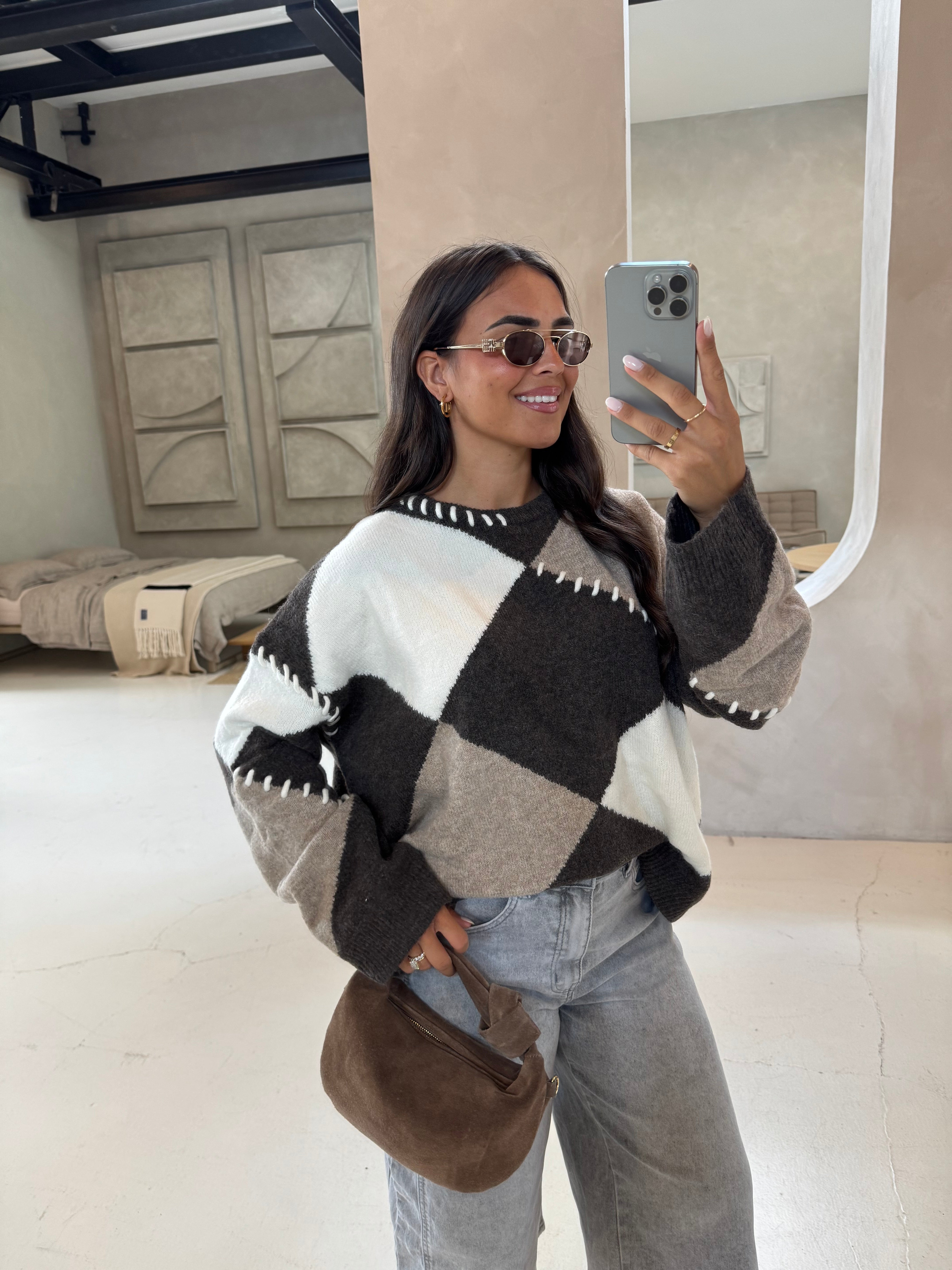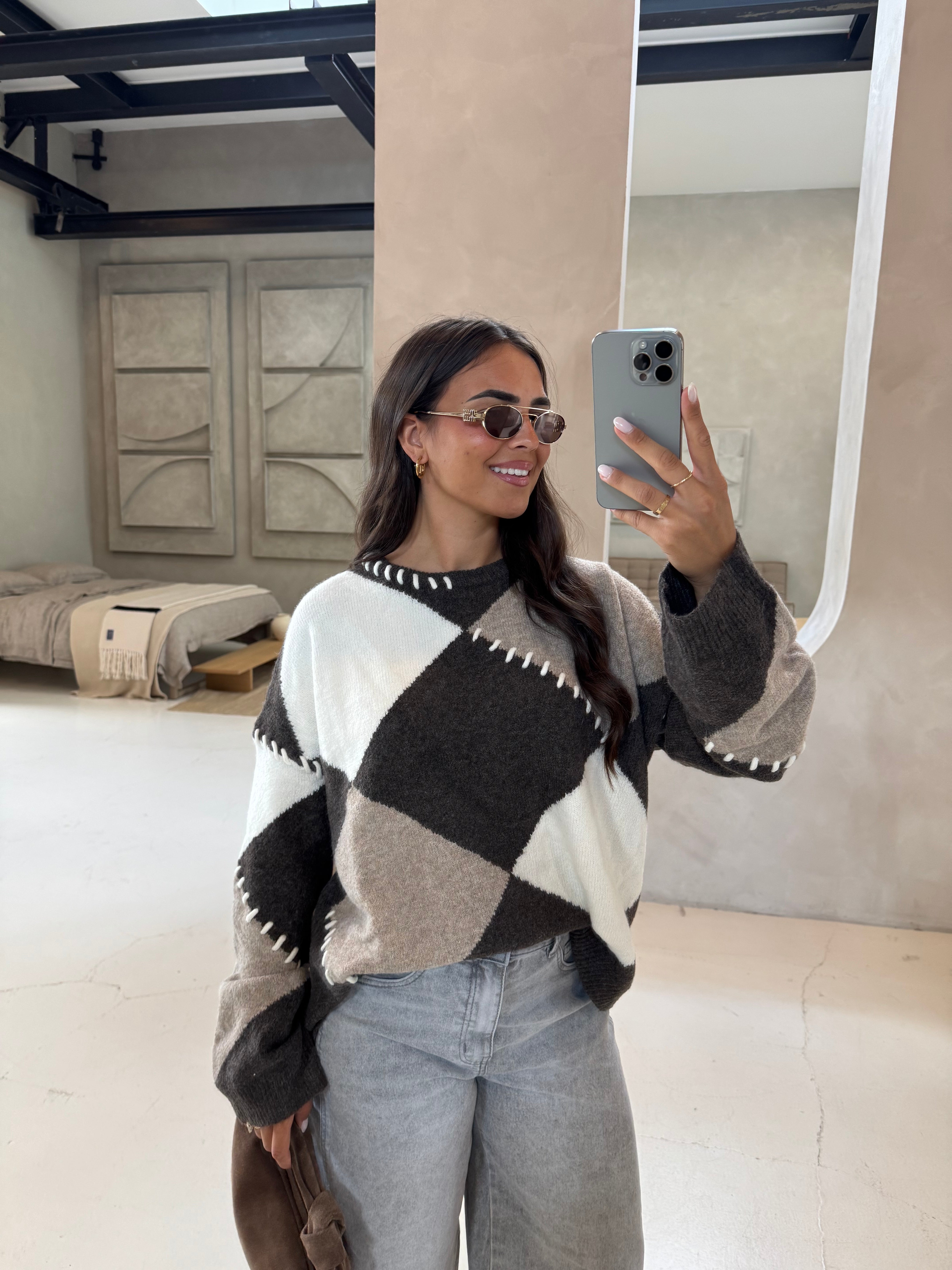 Pull à motifs marron (QT91049)