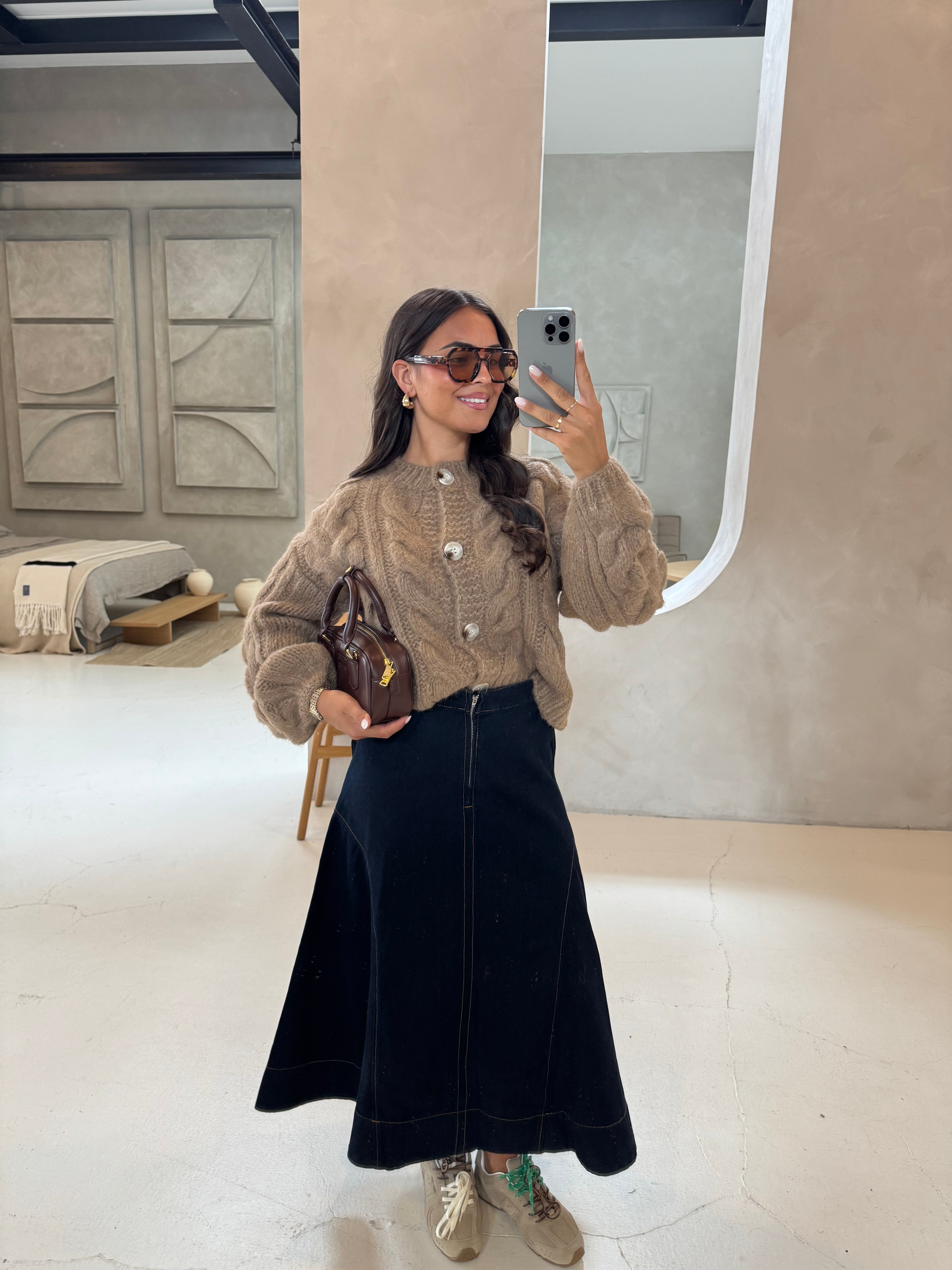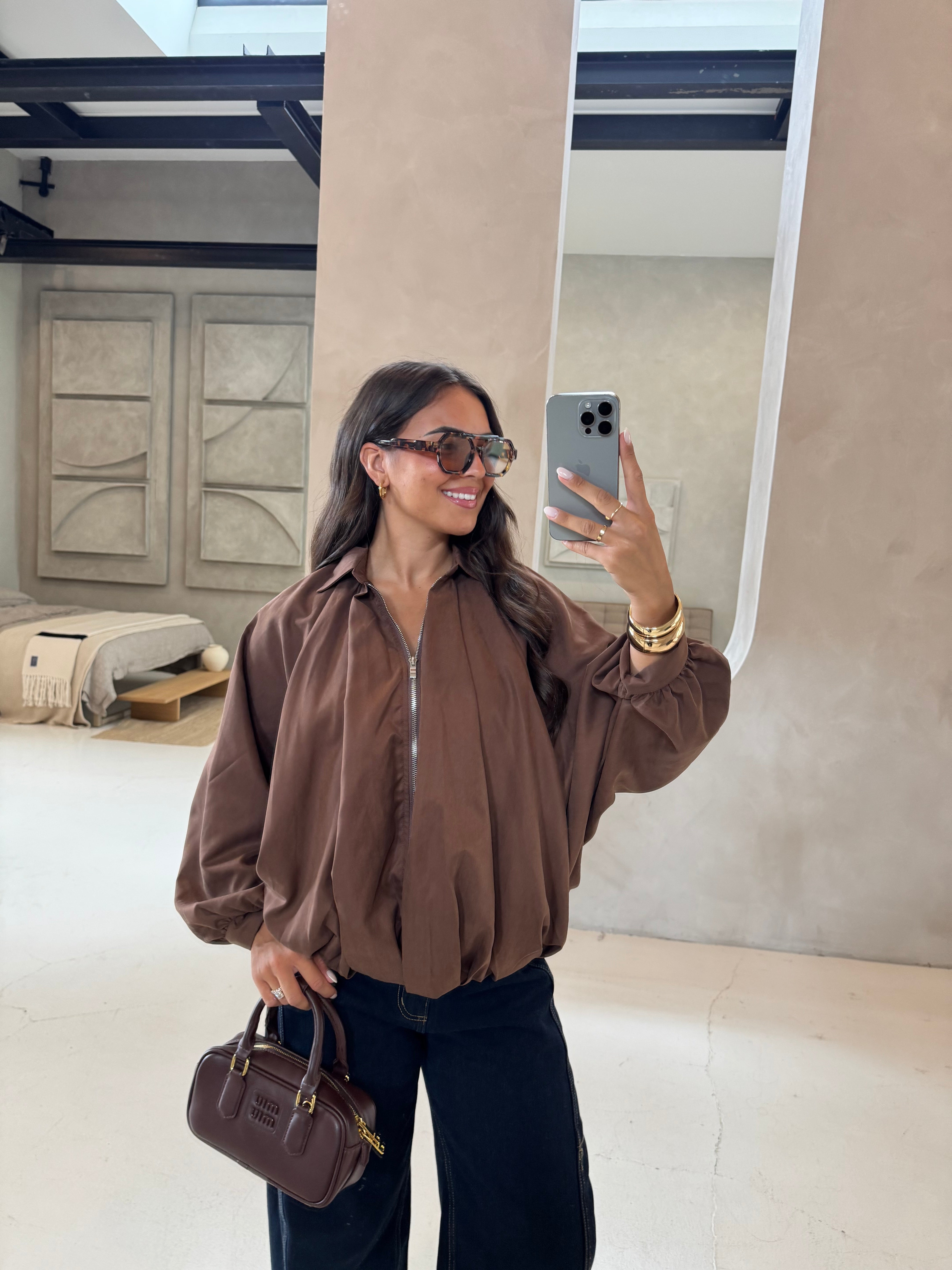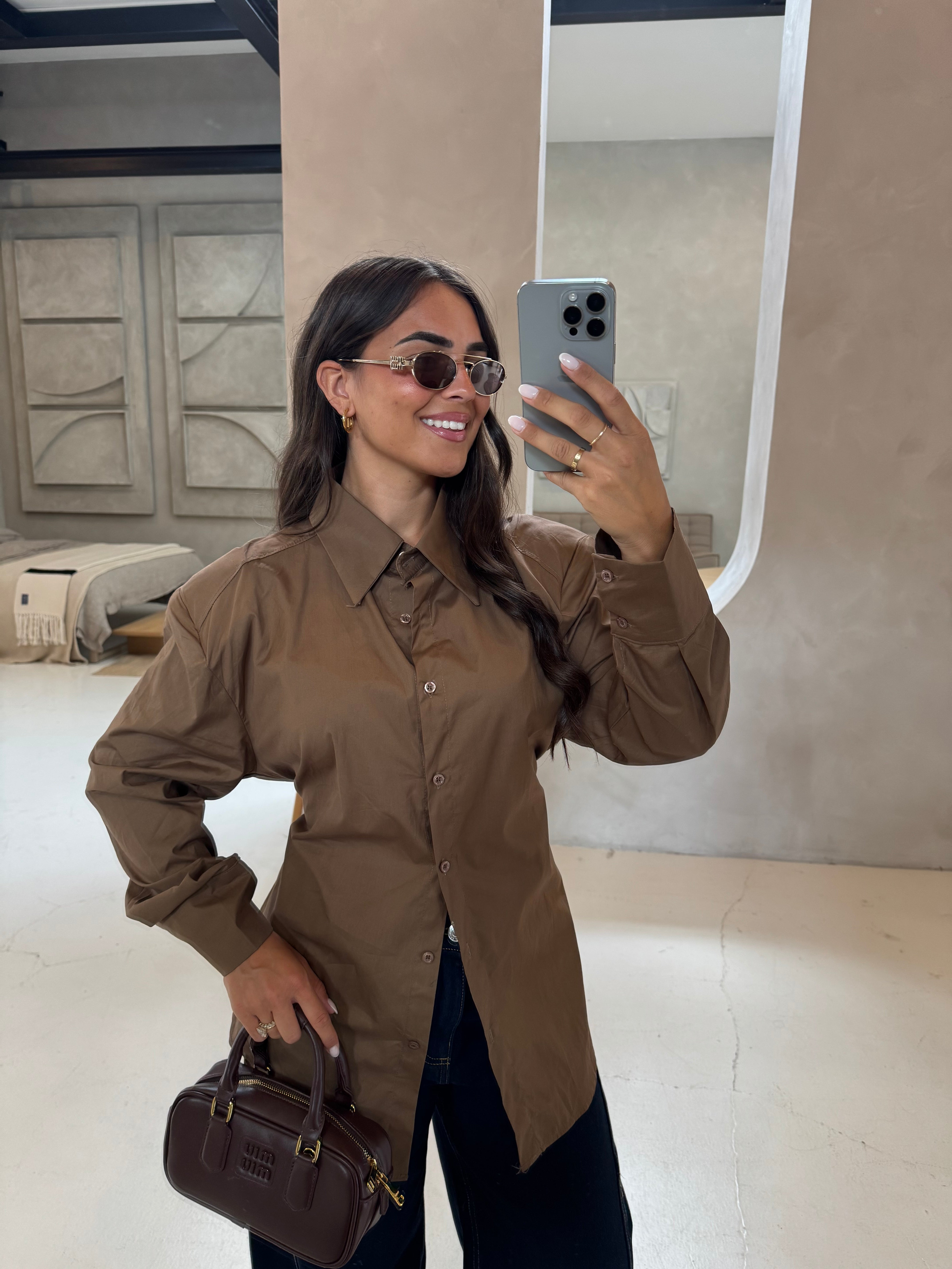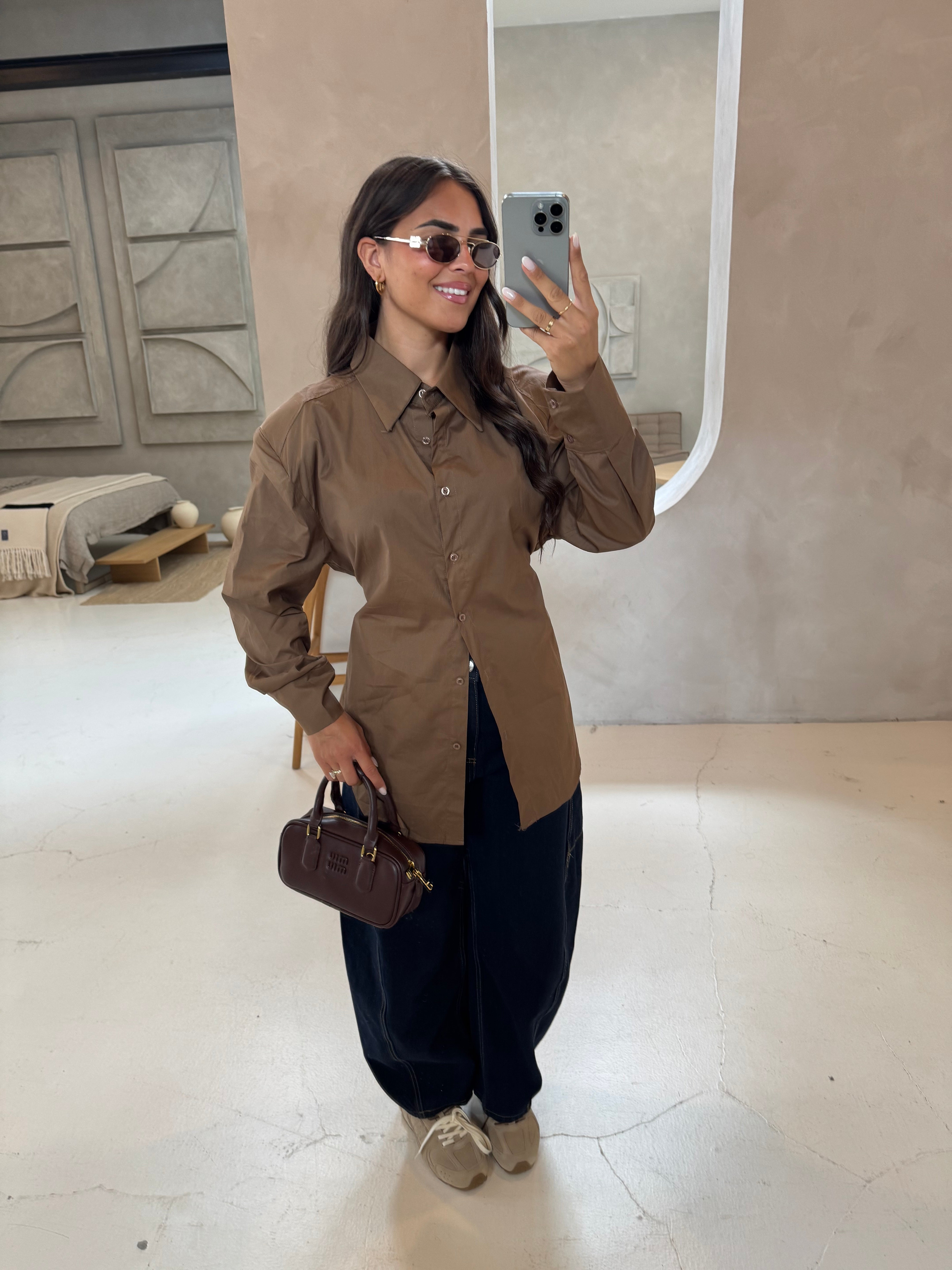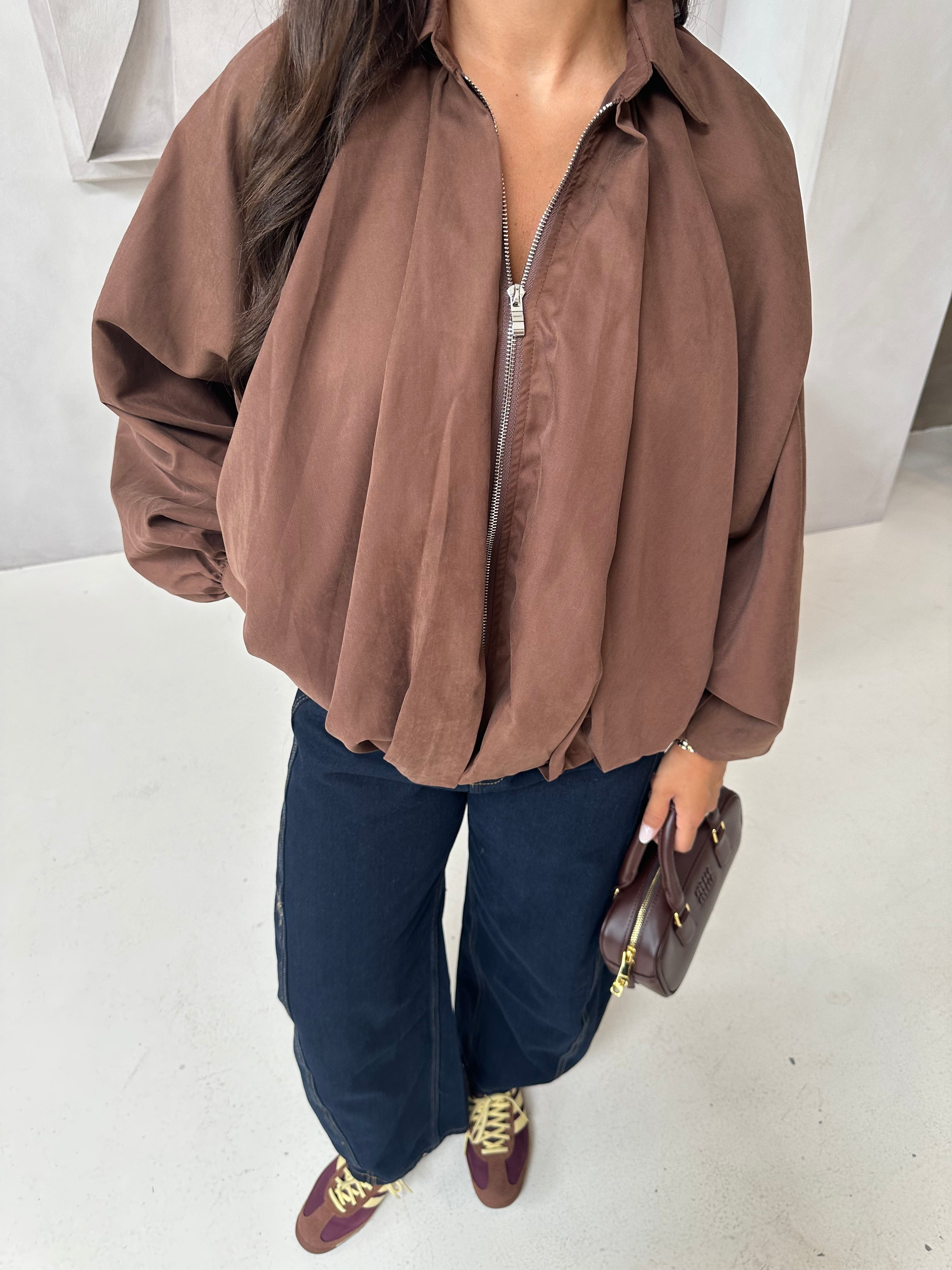 Jupe satinée marron (P6082)