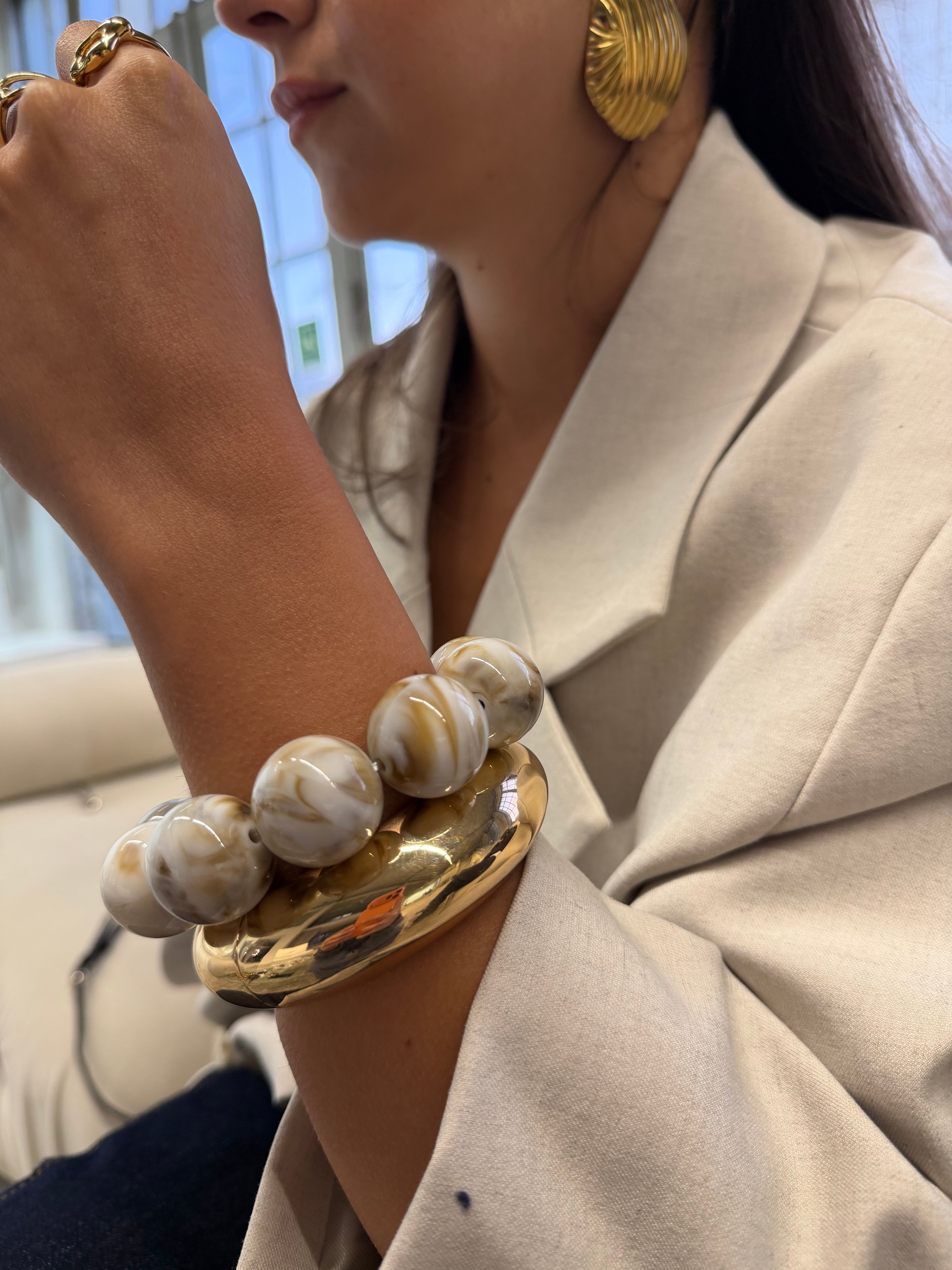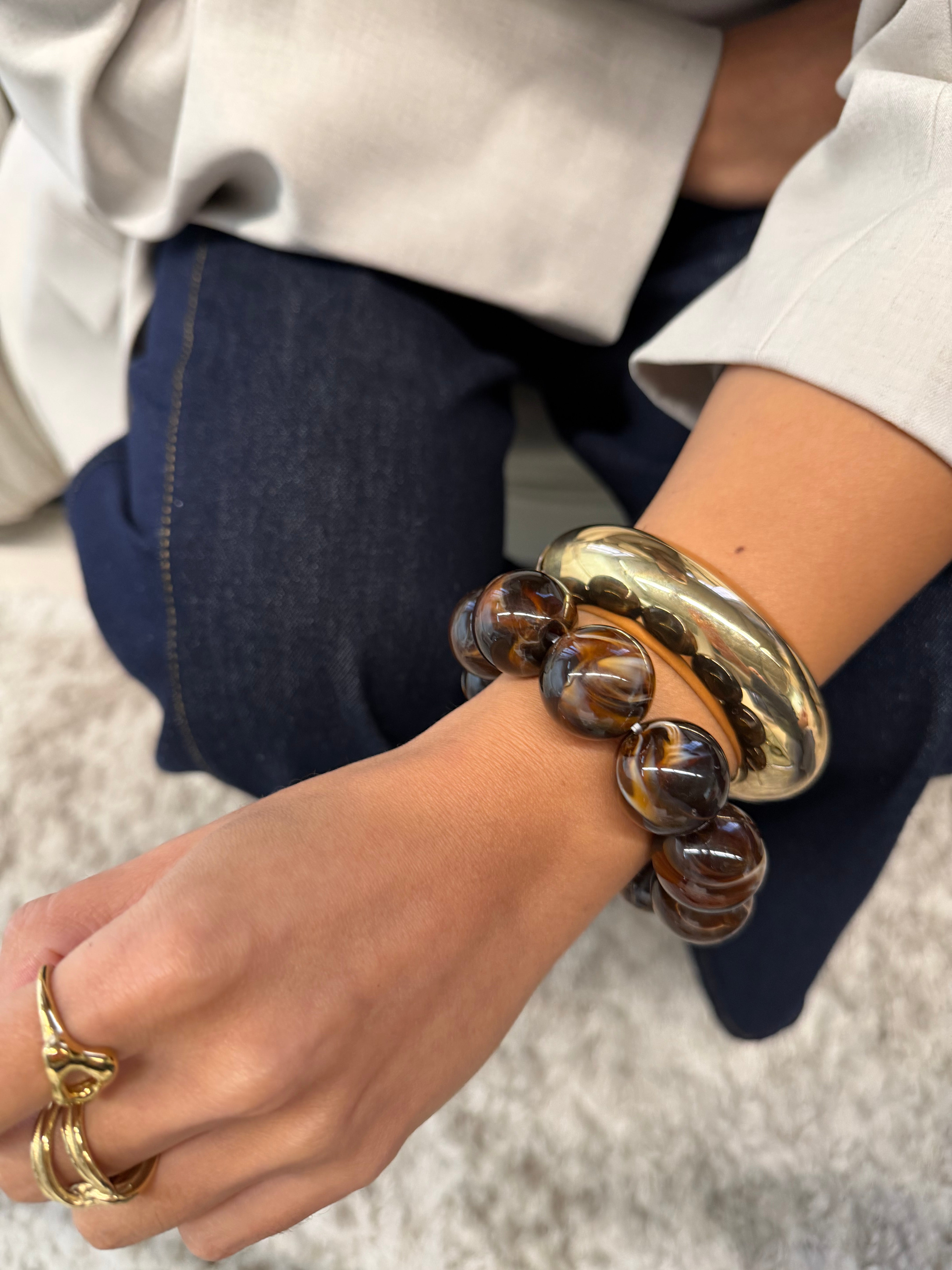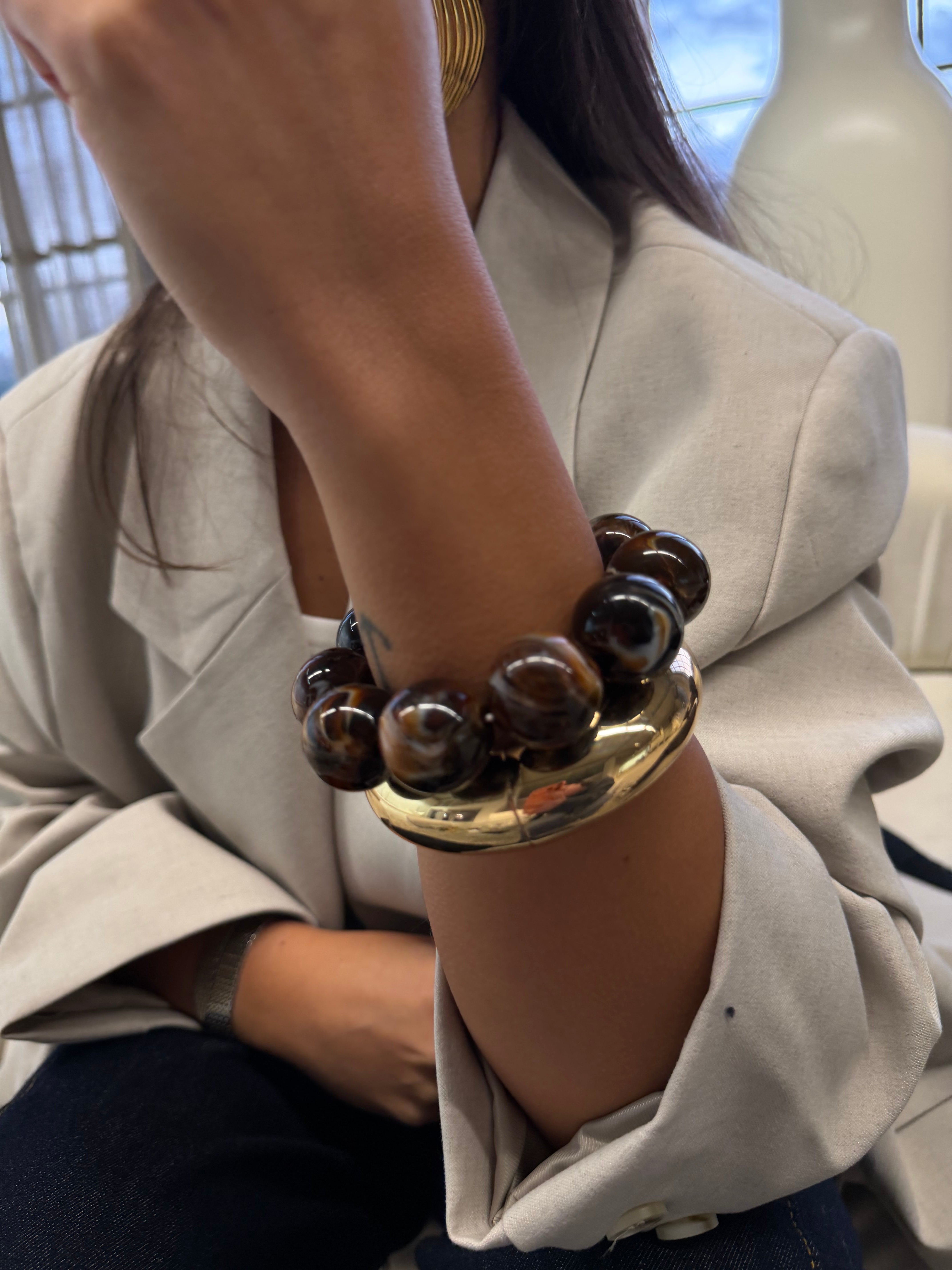 Bracelet jonc résine BOULE marron