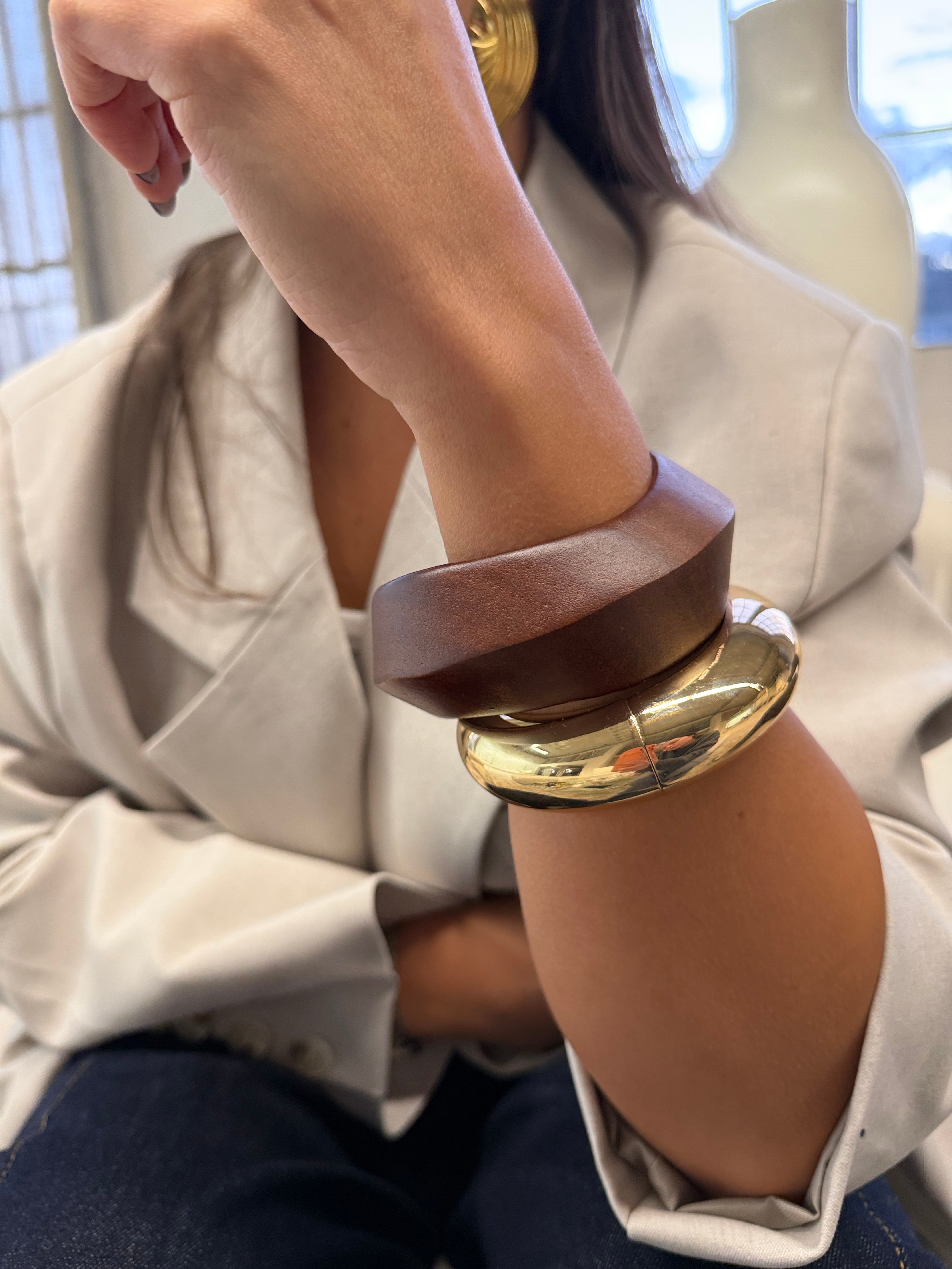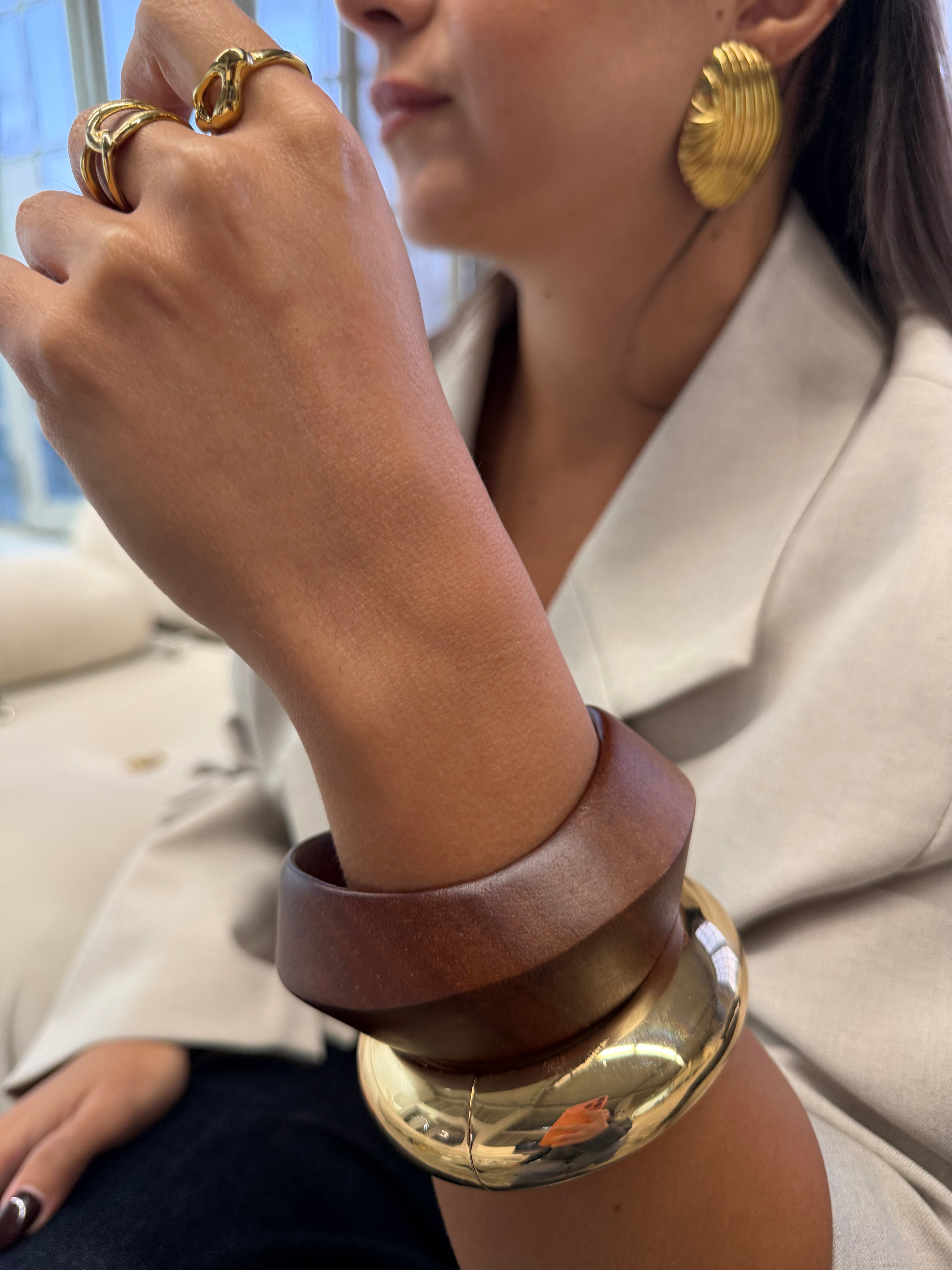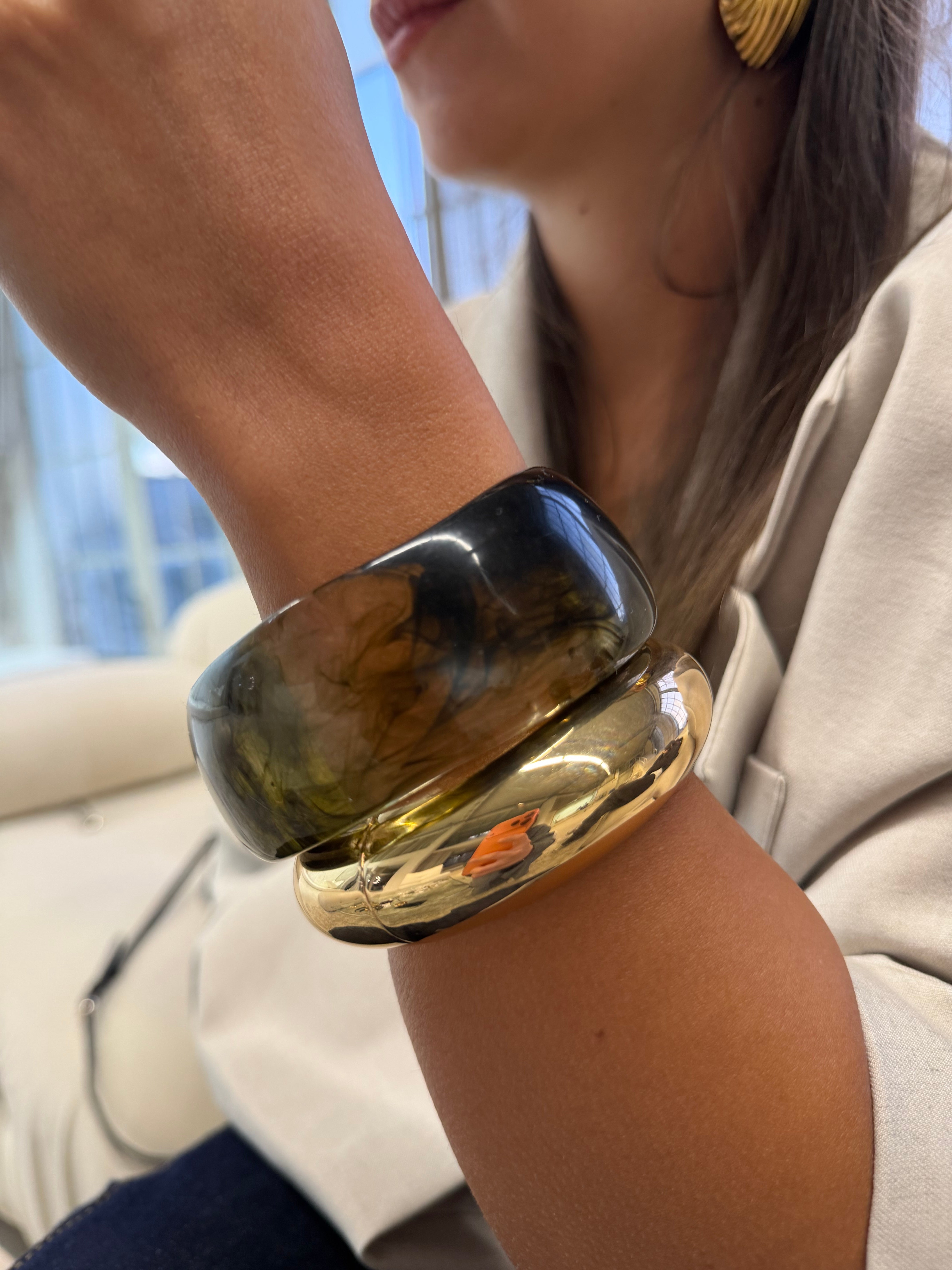 Bracelet jonc résine BOULE marron