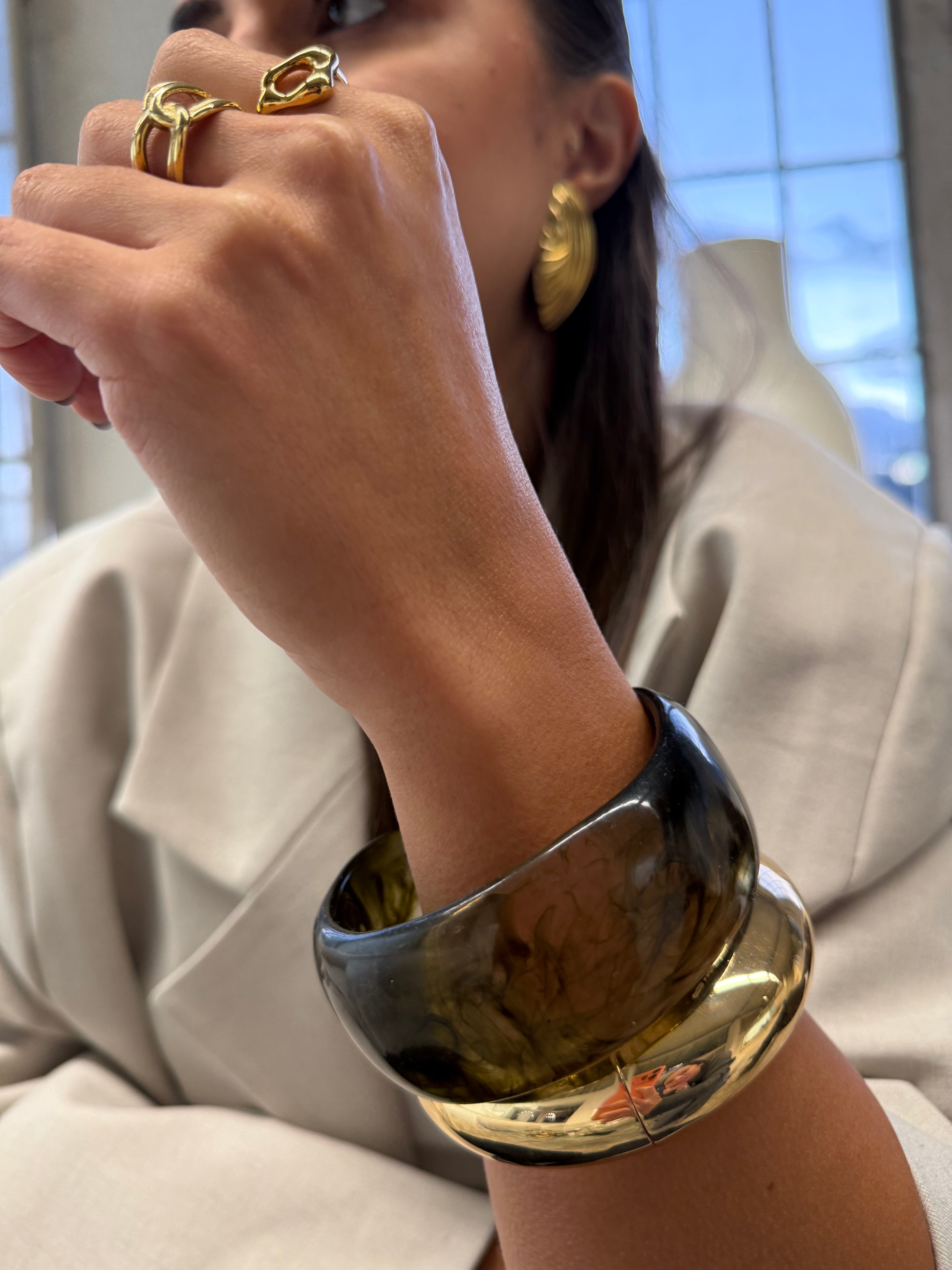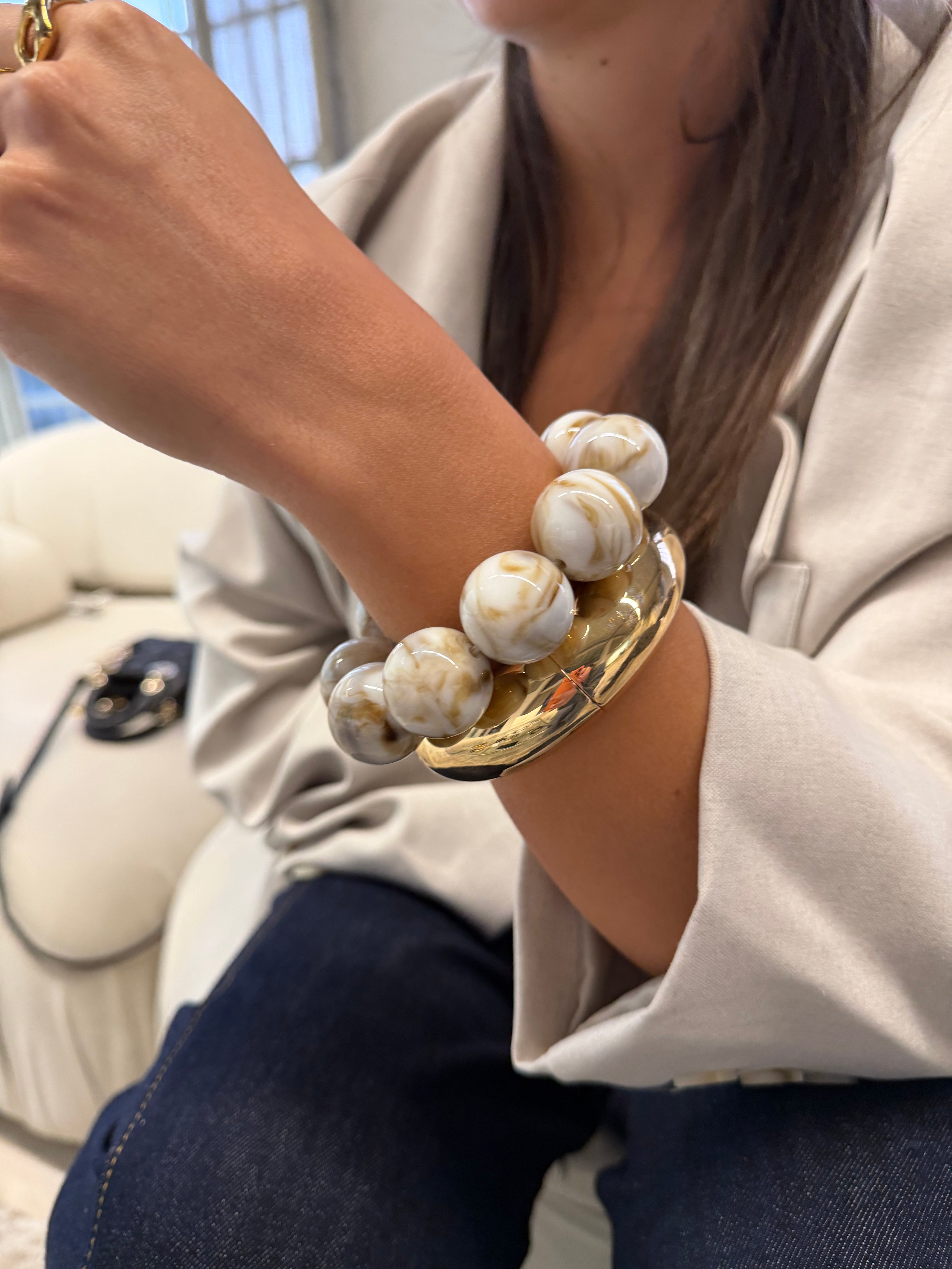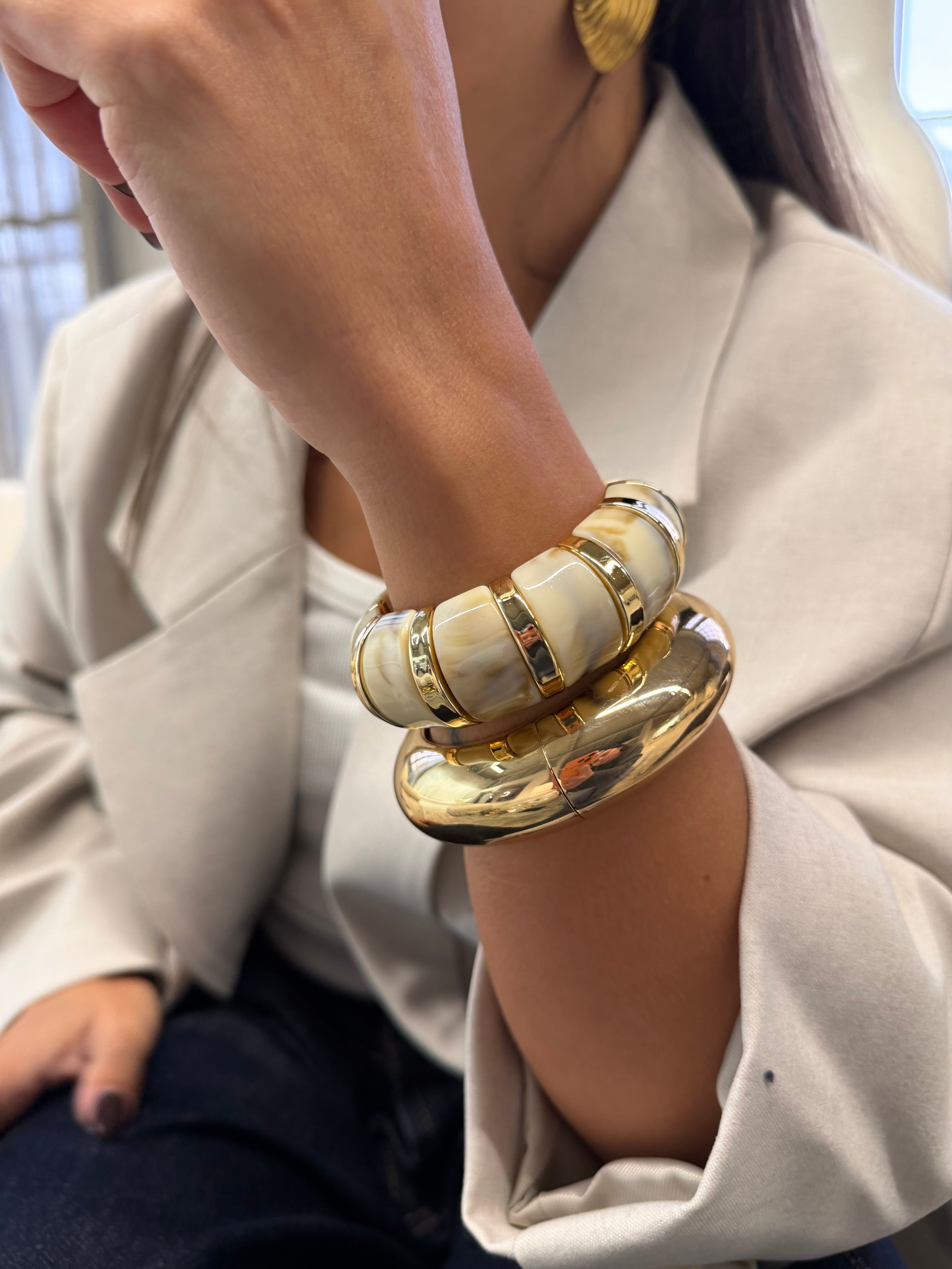 Bracelet jonc résine crème