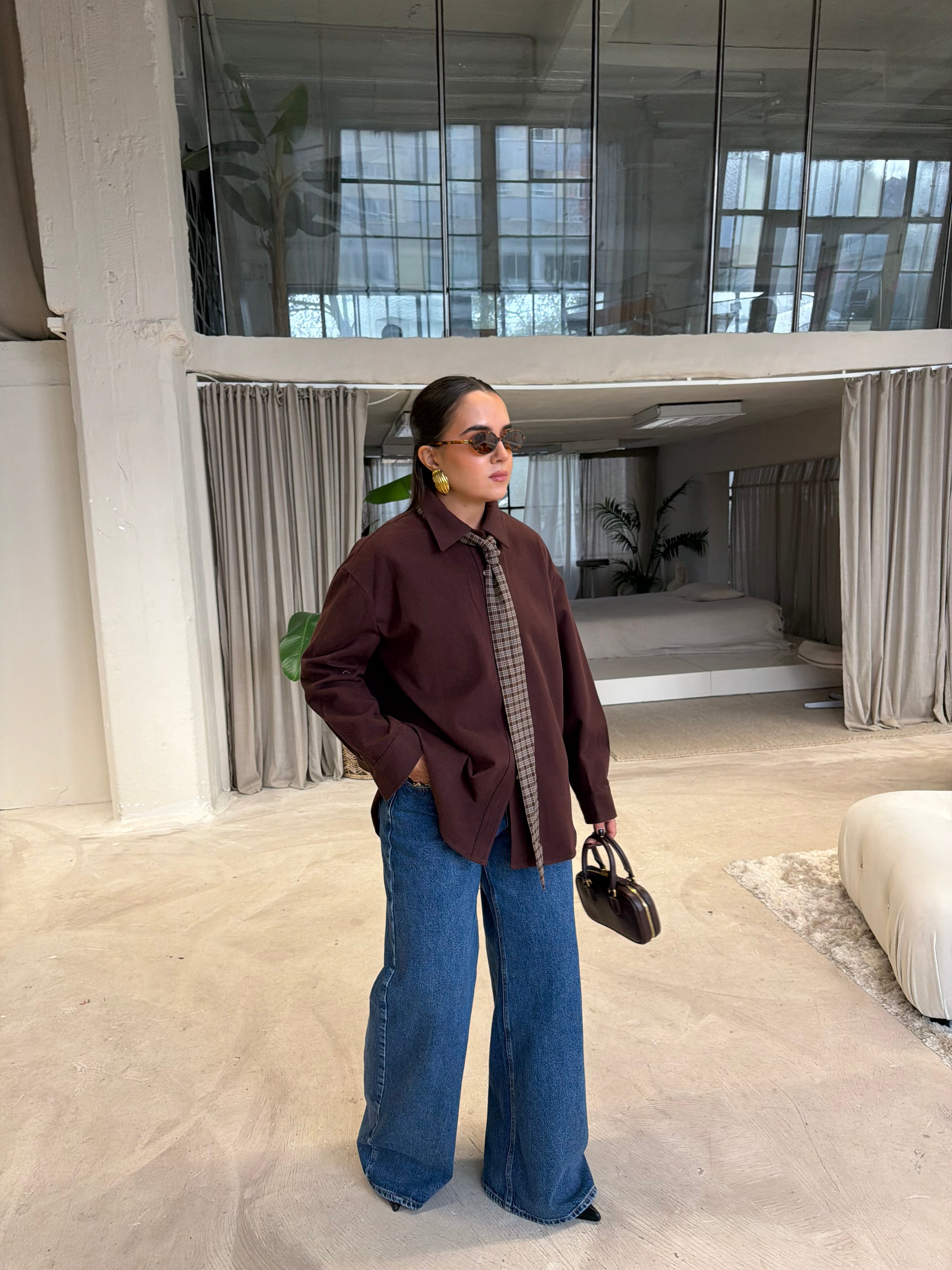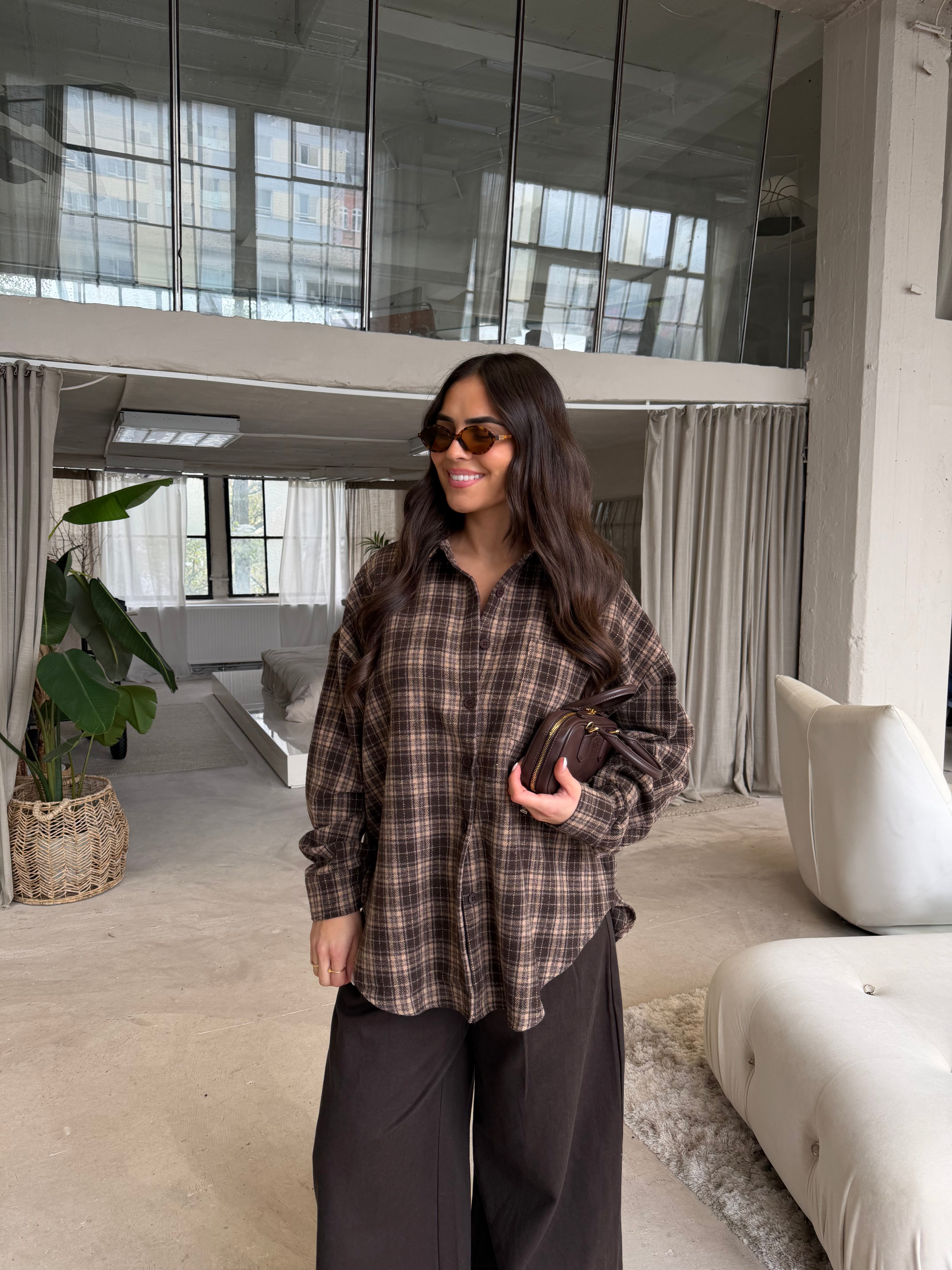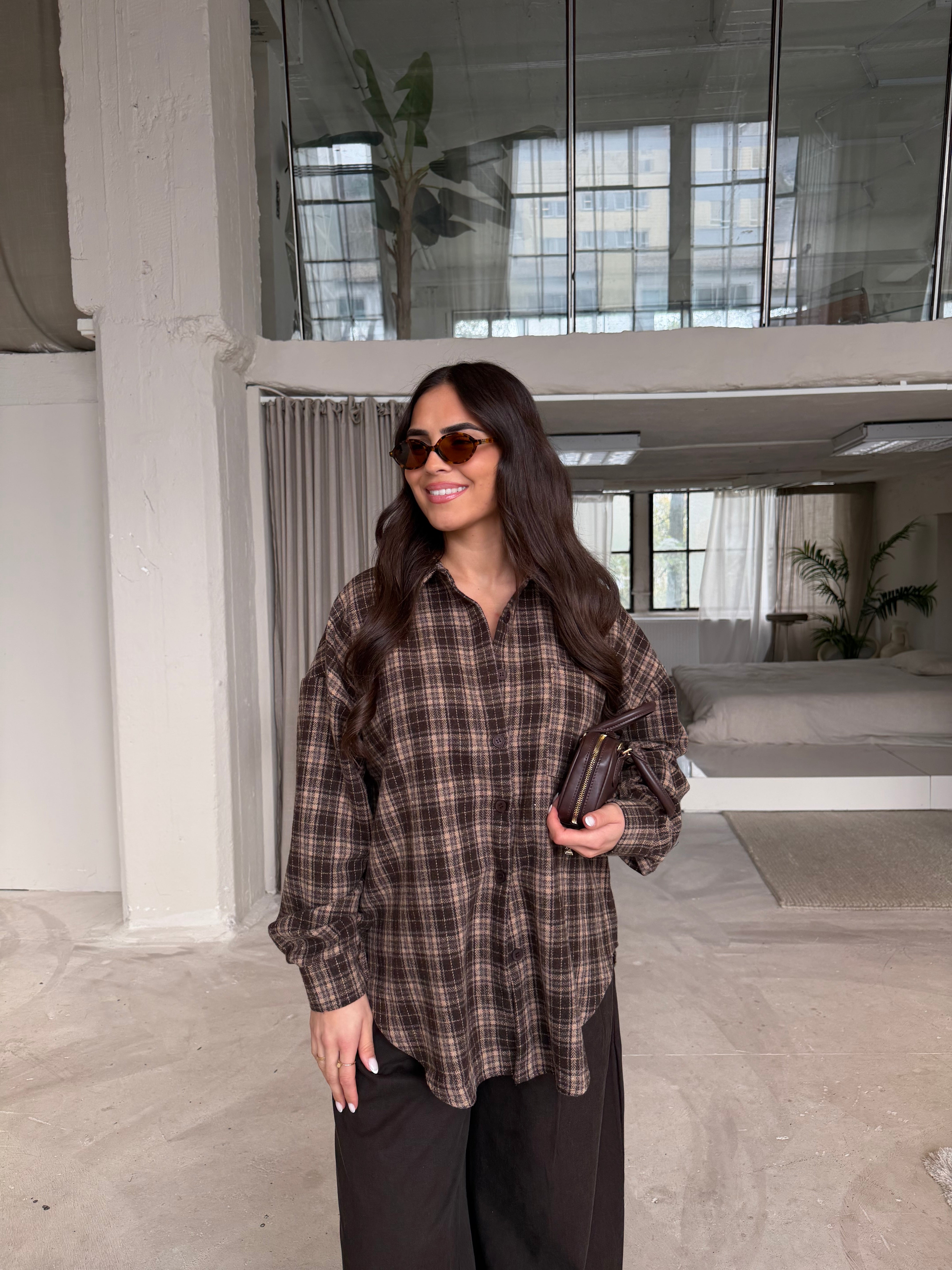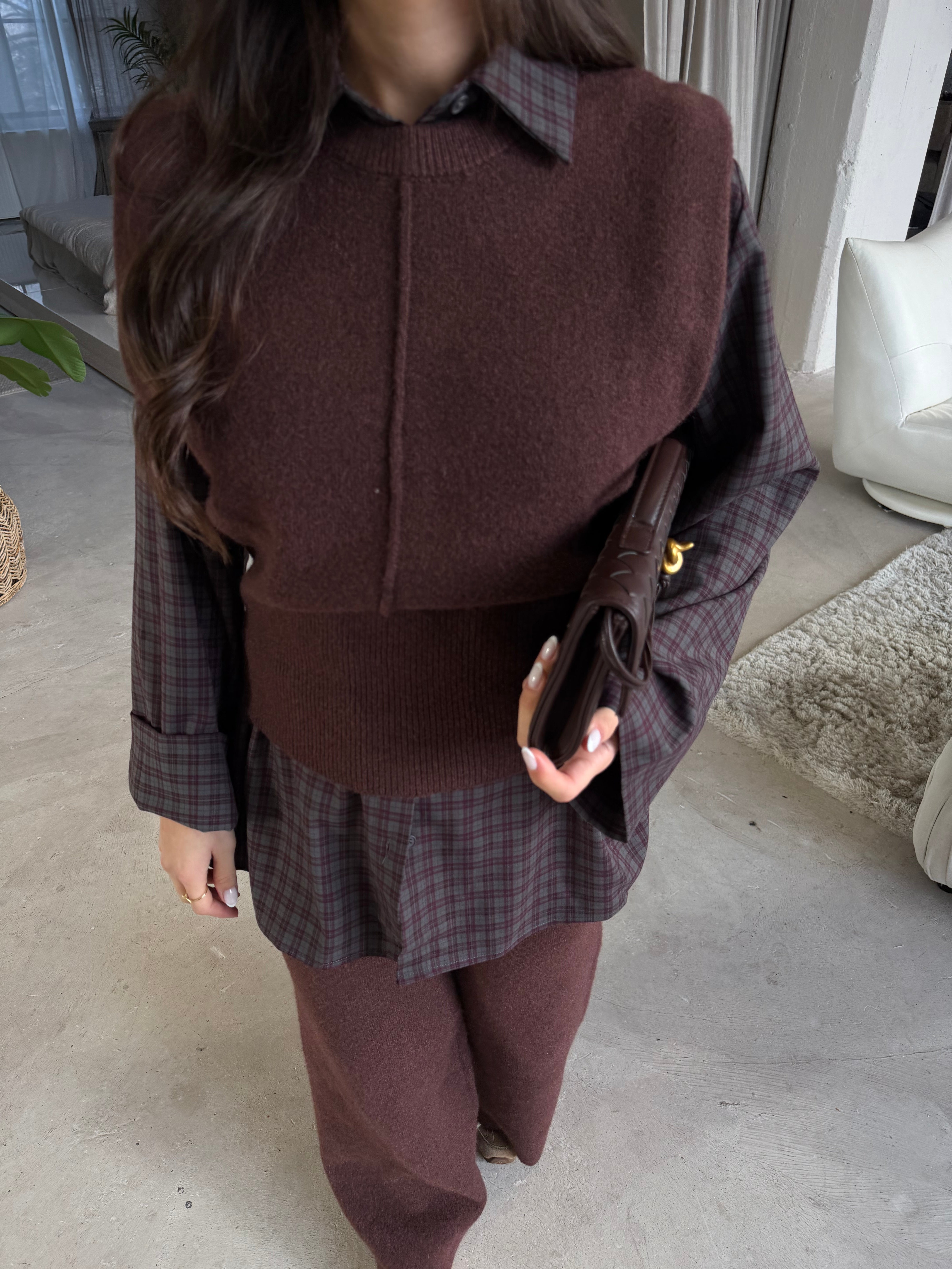Chemise à carreaux marron (H11788-2)
