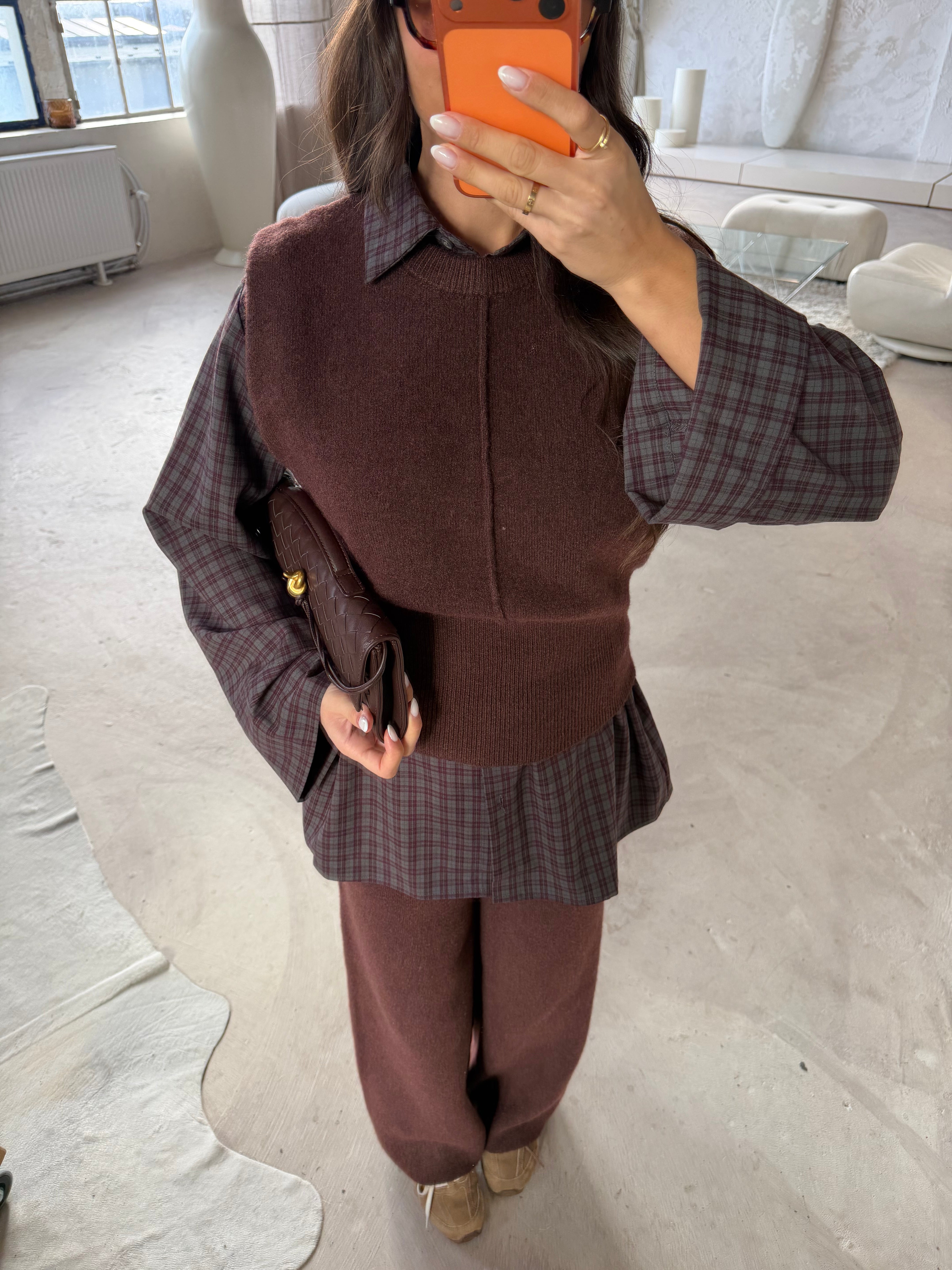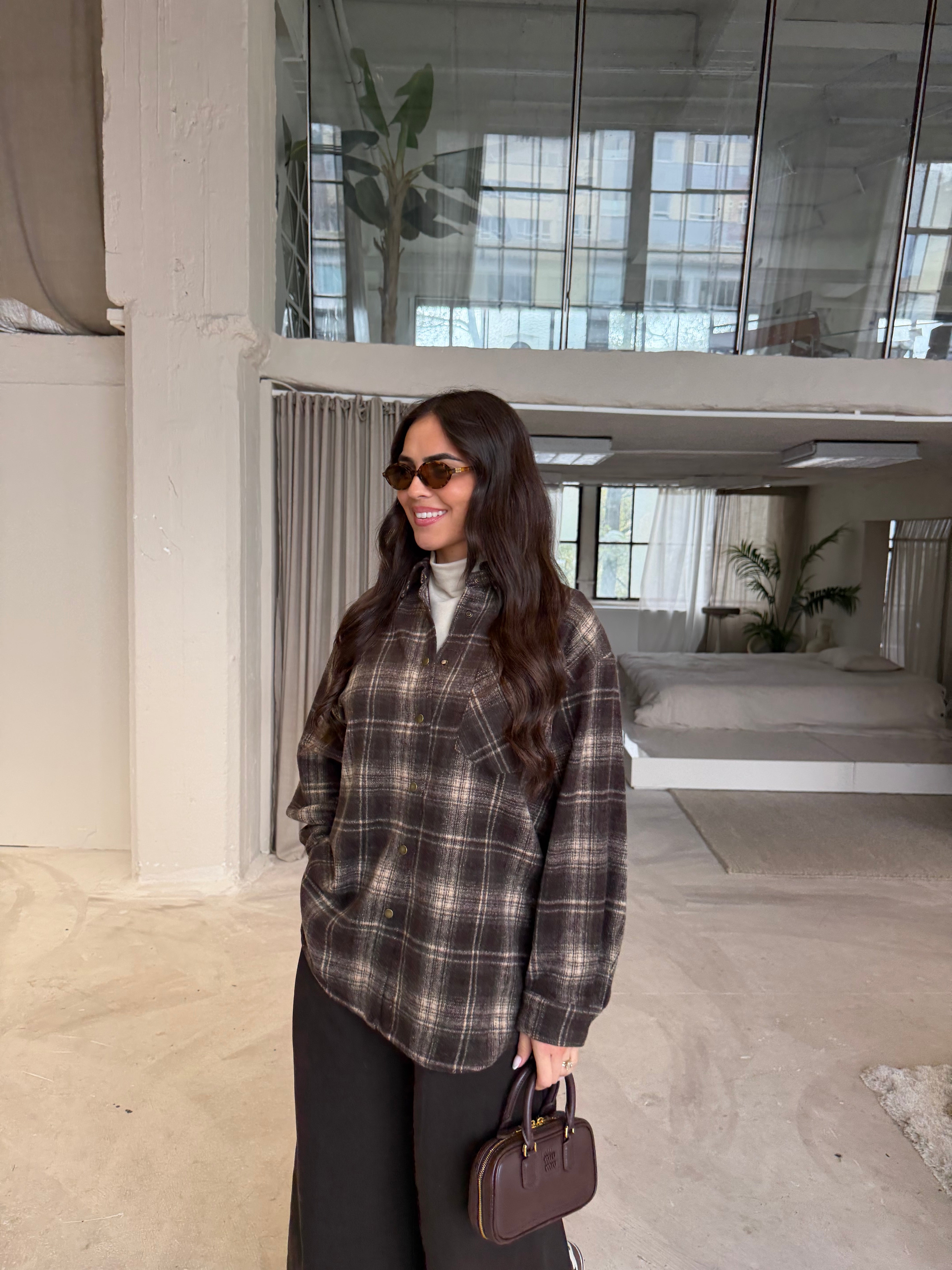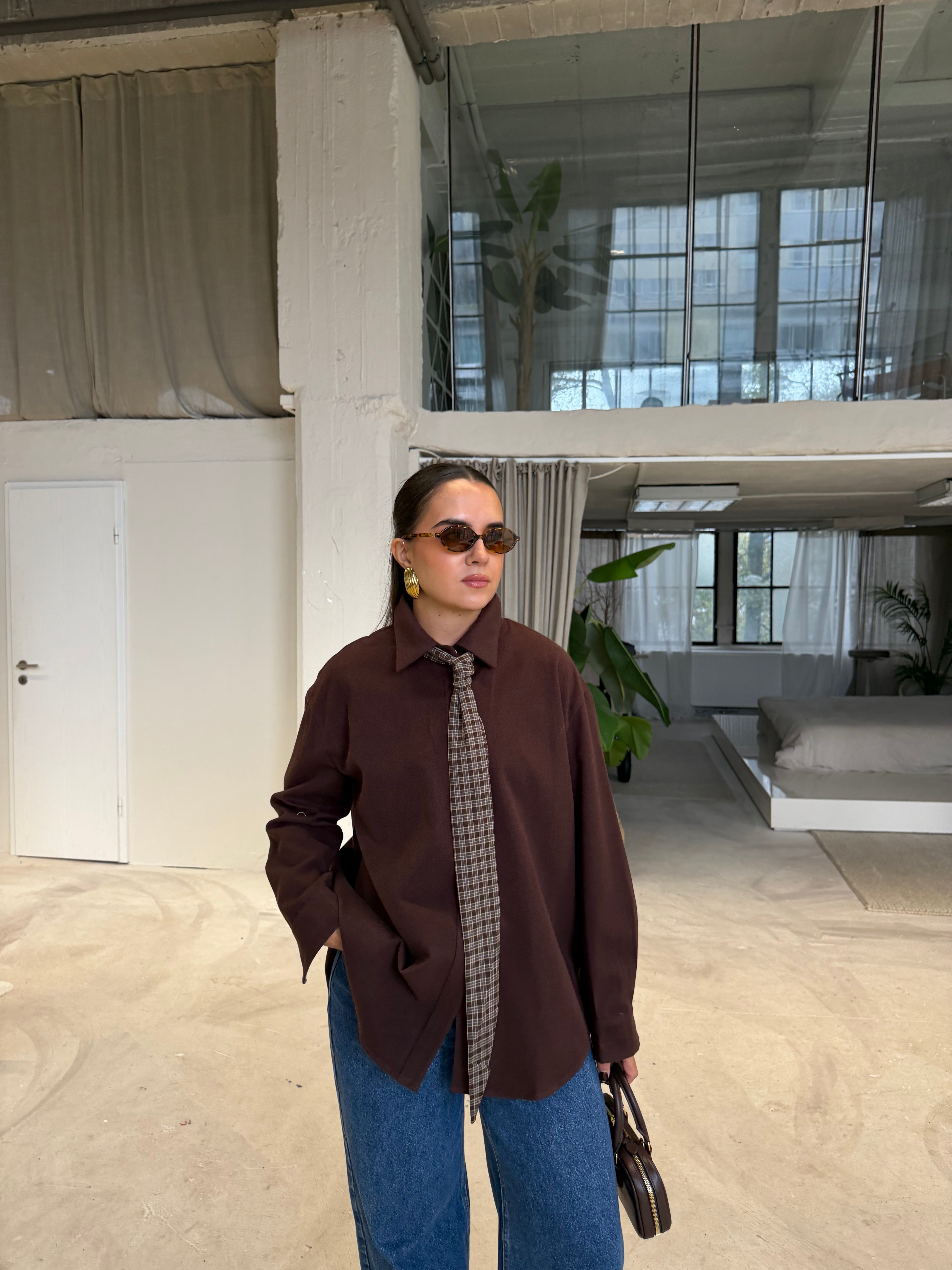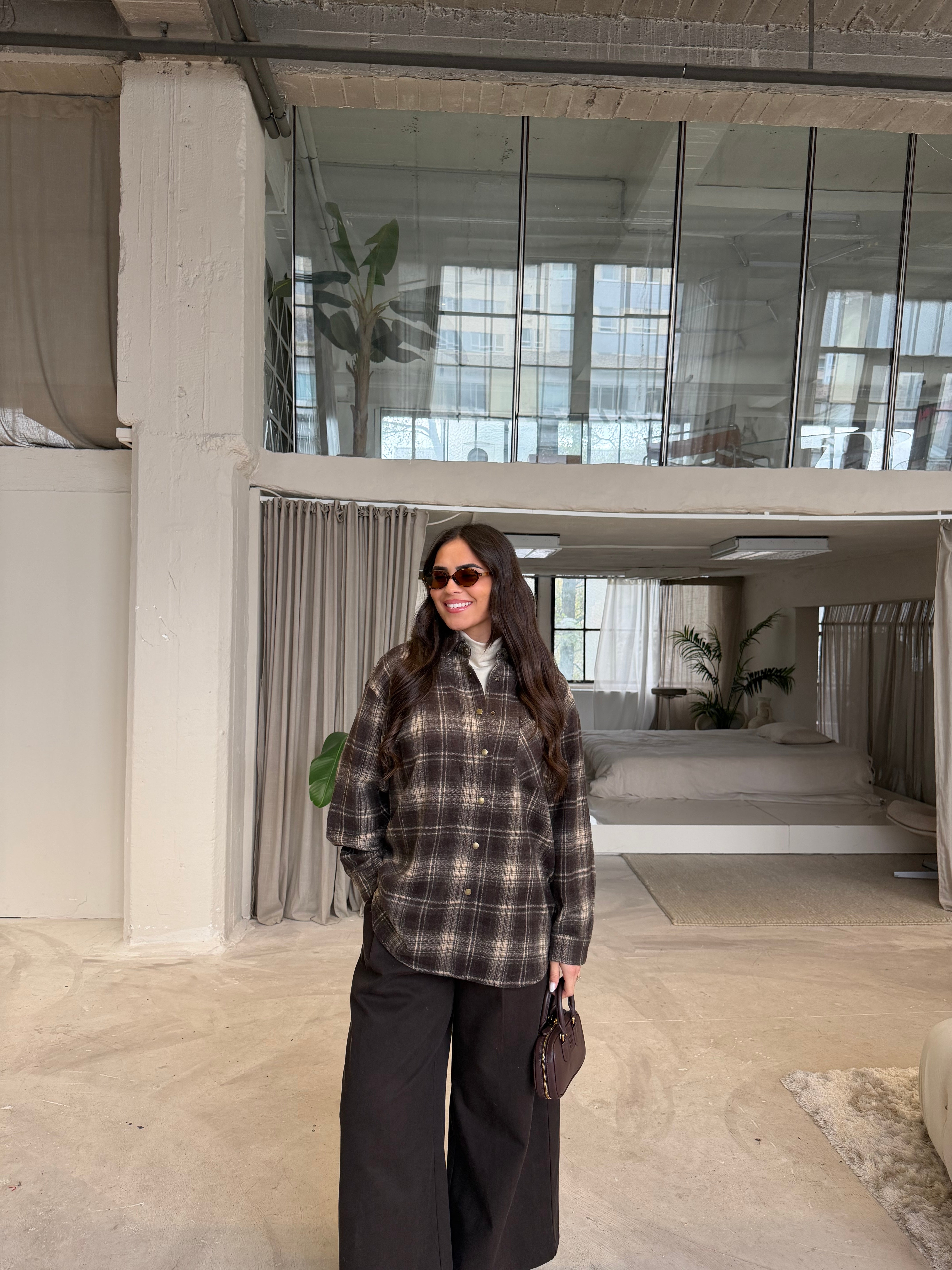 Chemise à carreaux marron (H11788-2)