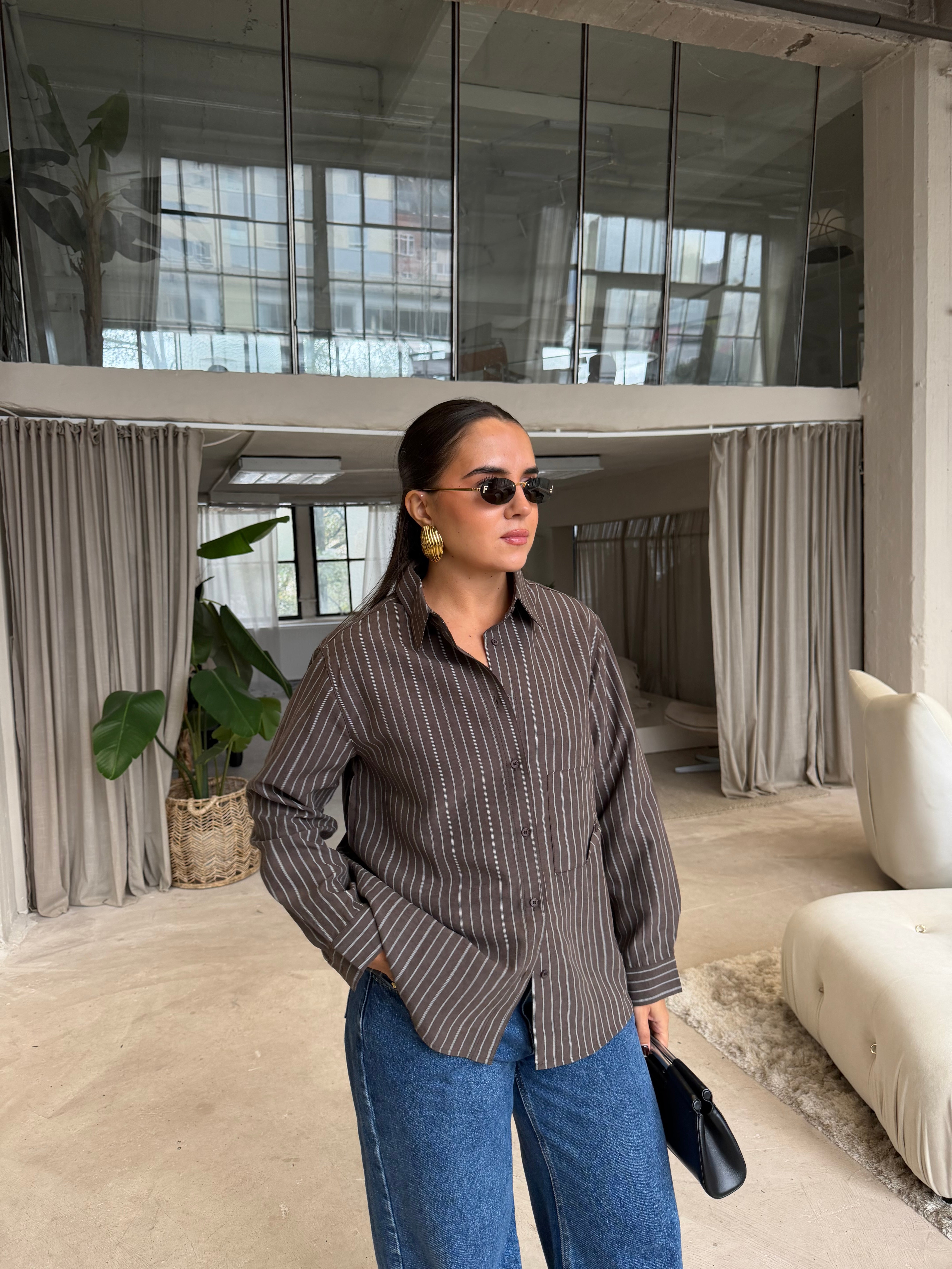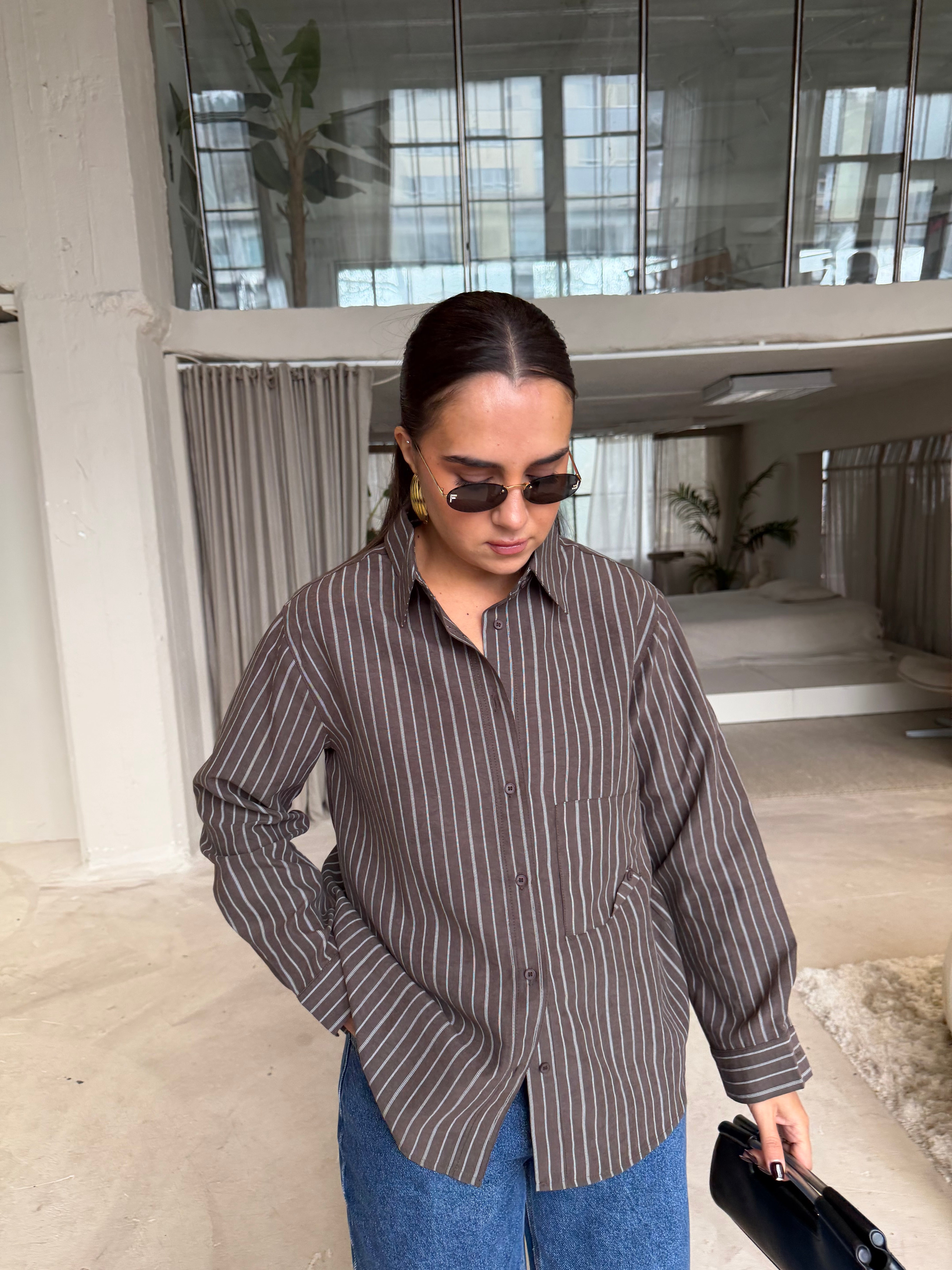 Chemise MADY rayures café (25616)