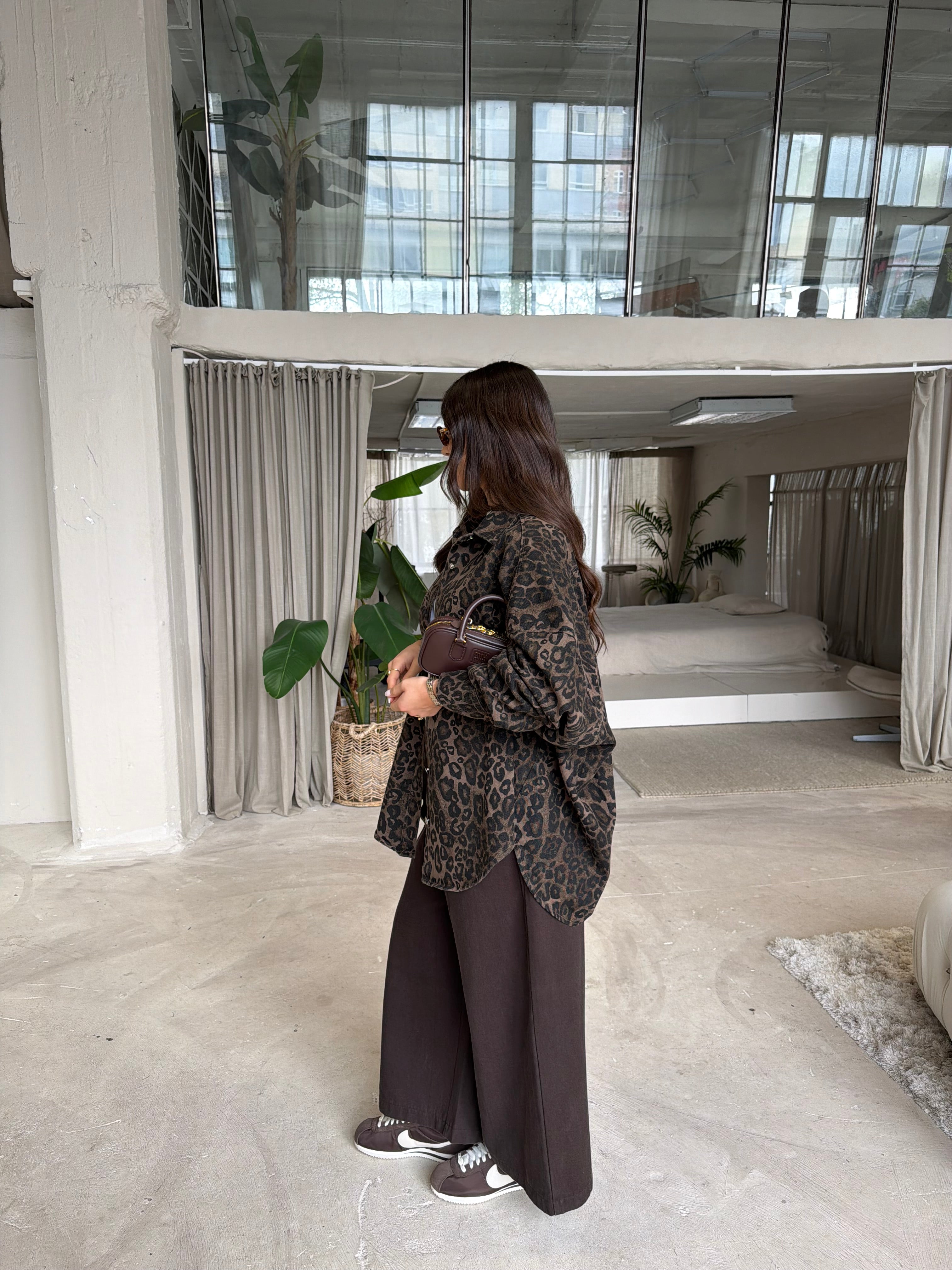 Chemise jean leopard bouton (H12333)