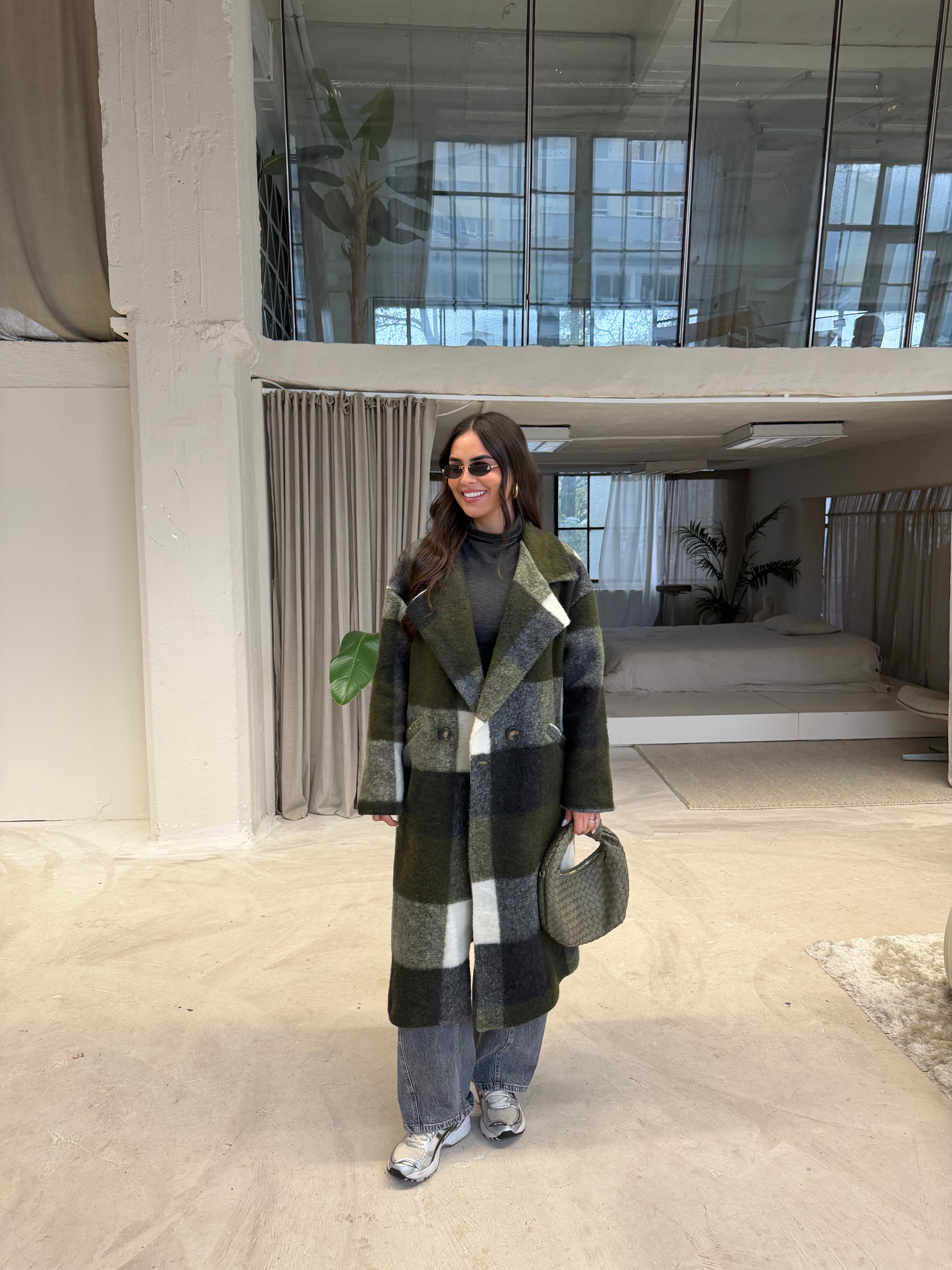 Manteau laine à carreaux kaki