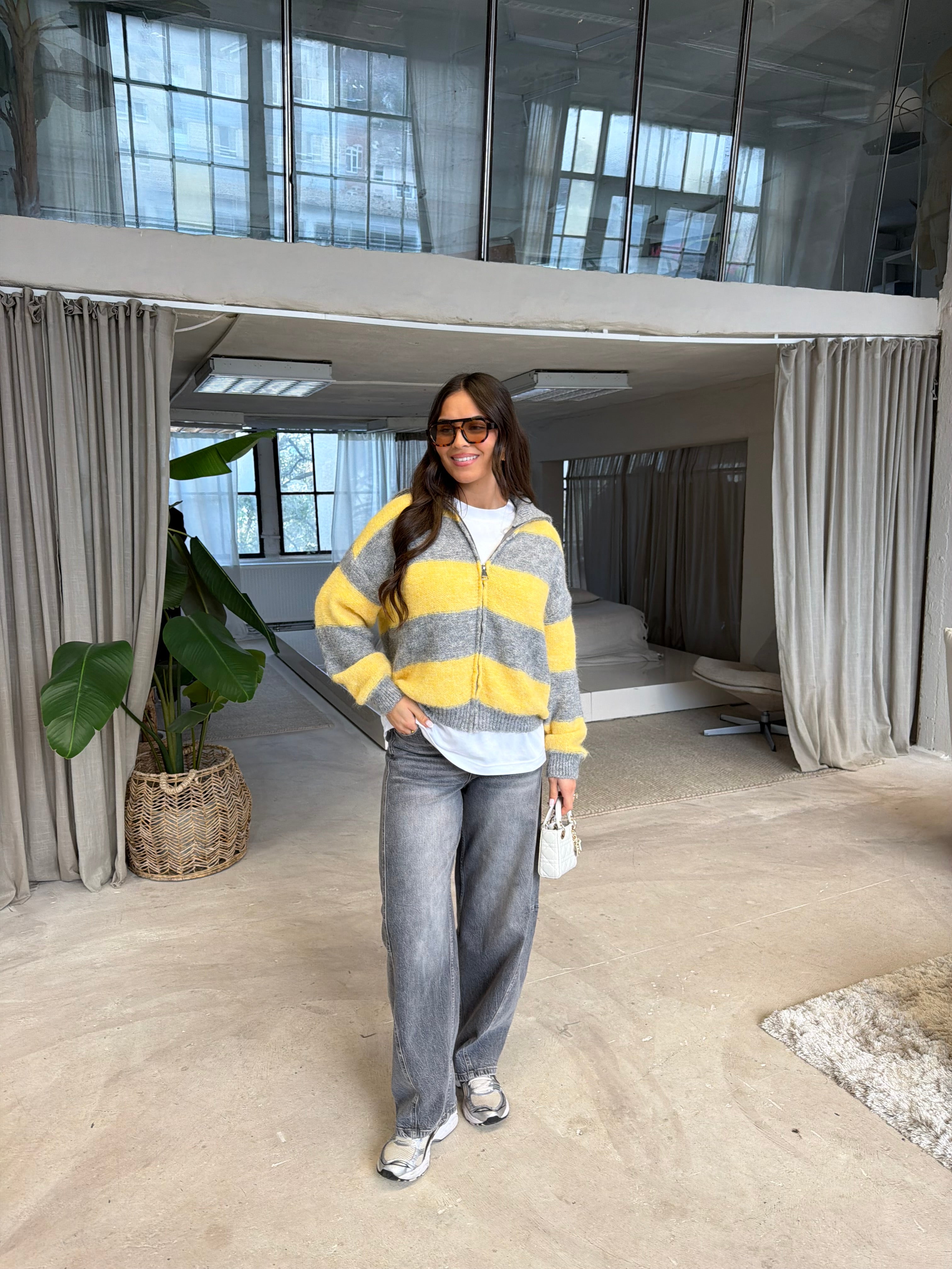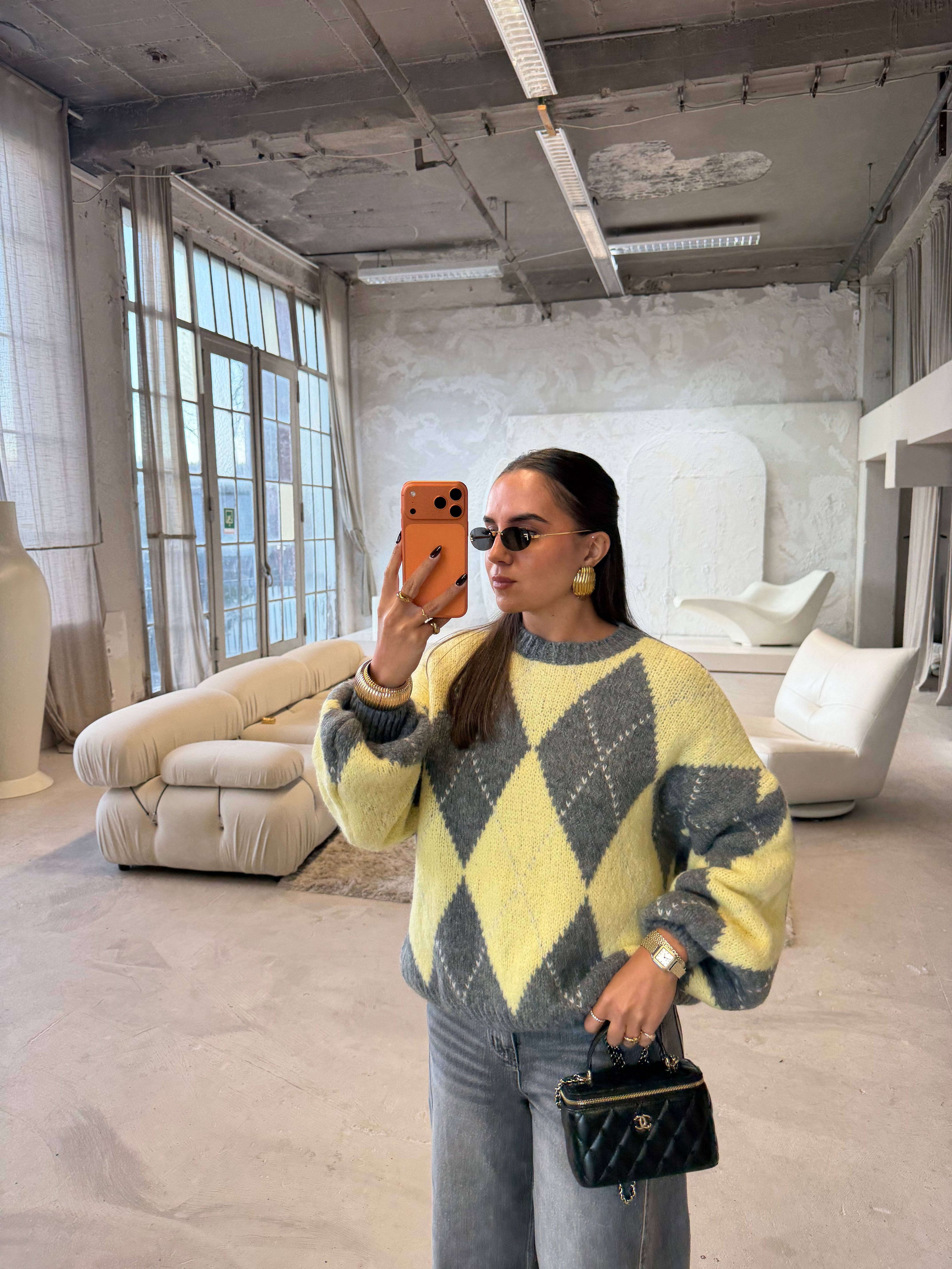 Pull LOSANGE jaune gris
